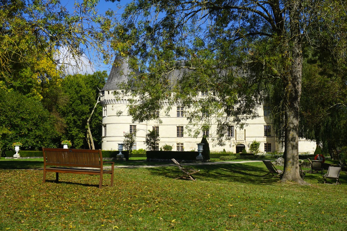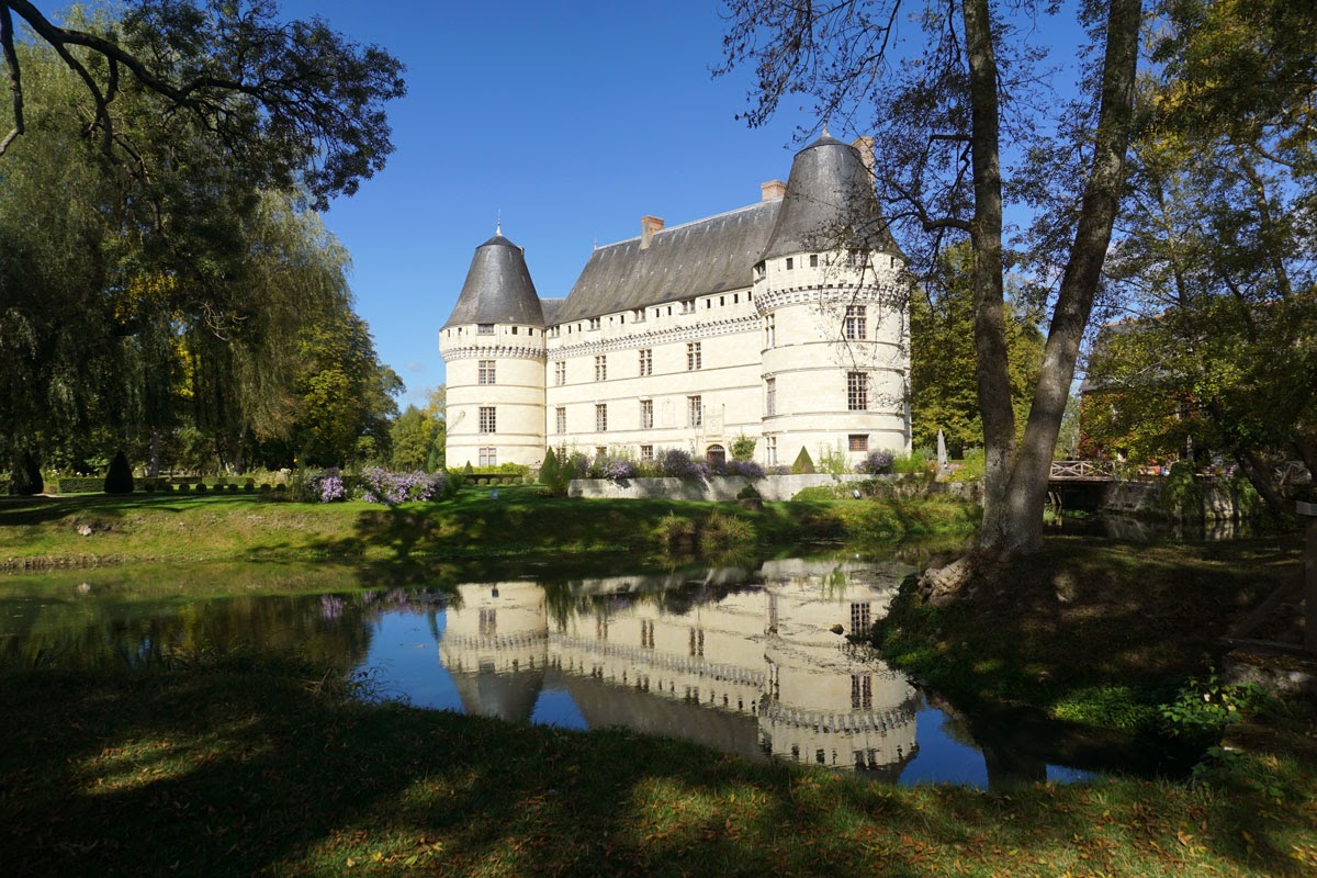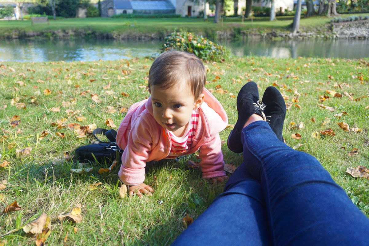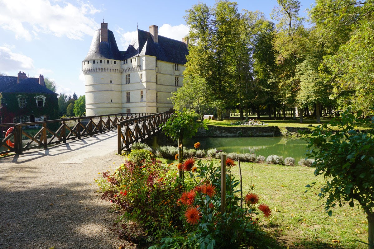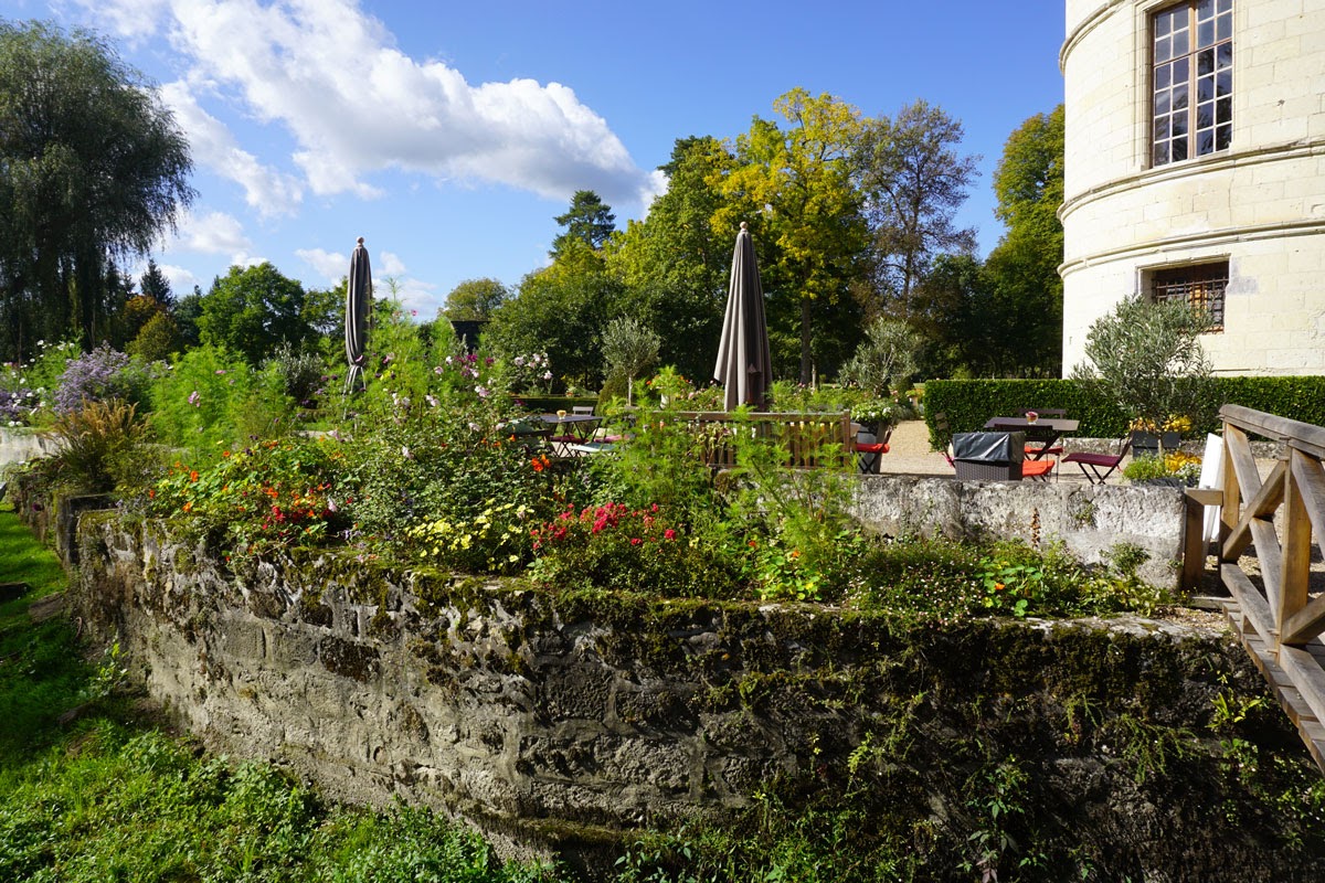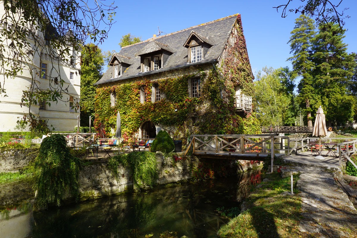 Grădina mi-a plăcut mai mult decât interiorul, așezarea castelului fiind foarte ingenioasă. Râul Indre care traversează domeniul îi dă un farmec aparte, peste el fiind amenajate din loc în loc poduri iar pe maluri alei de promenadă. Ne-am oprit și noi puțin pe iarbă de pe mal, dar din păcate nu am putut sta mult, se făcea ora prânzului iar pentru Erika nu e chip să întârzii cu masa. Dar ce aș mai fi stat! Mai ales că toamna își cam intrase în drepturi, iar lumina care scălda domeniul era de vis.