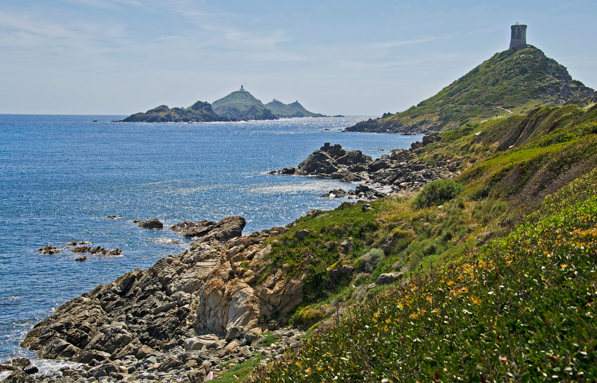 În spatele turnului se zărește arhipelagul  Sanguinaires, format din 4 insule, cea mai apropiată fiind Isula di Porri, urmată de Isolotto, Isula di Cala d’Alga și în sfârșit Mezzu Mare, cu suprafața cea mai întinsă, 34ha. Există mai multe ipoteze în ceea ce privește numele Sanguinaires, insulele sangelui: una spune că ar veni de la frankenies, plante cu flori roșii și frunze care devin sângerii toamna, alta leagă numele de culoarea roșiatică a stâncilor. O altă ipoteză pomenește de prezența coralilor pe insule, I sangui neri în limba corsicană, sânge negru. În fine, mai există o teorie ce leagă numele insulelor de golful Sagone, acestea fiind numite cândva insulele sagonaires. Se pare că locul este un paradis al păsărilor, diferite specii pot fi observate atât pe insule cât și pe pensinsula. De asemenea flora este una specific medieraneana unde predomină maquisul măturat de vânturi, plus alte specii de plante, pe care cel mai interesant este să le admiri primăvara, când sunt înflorite.