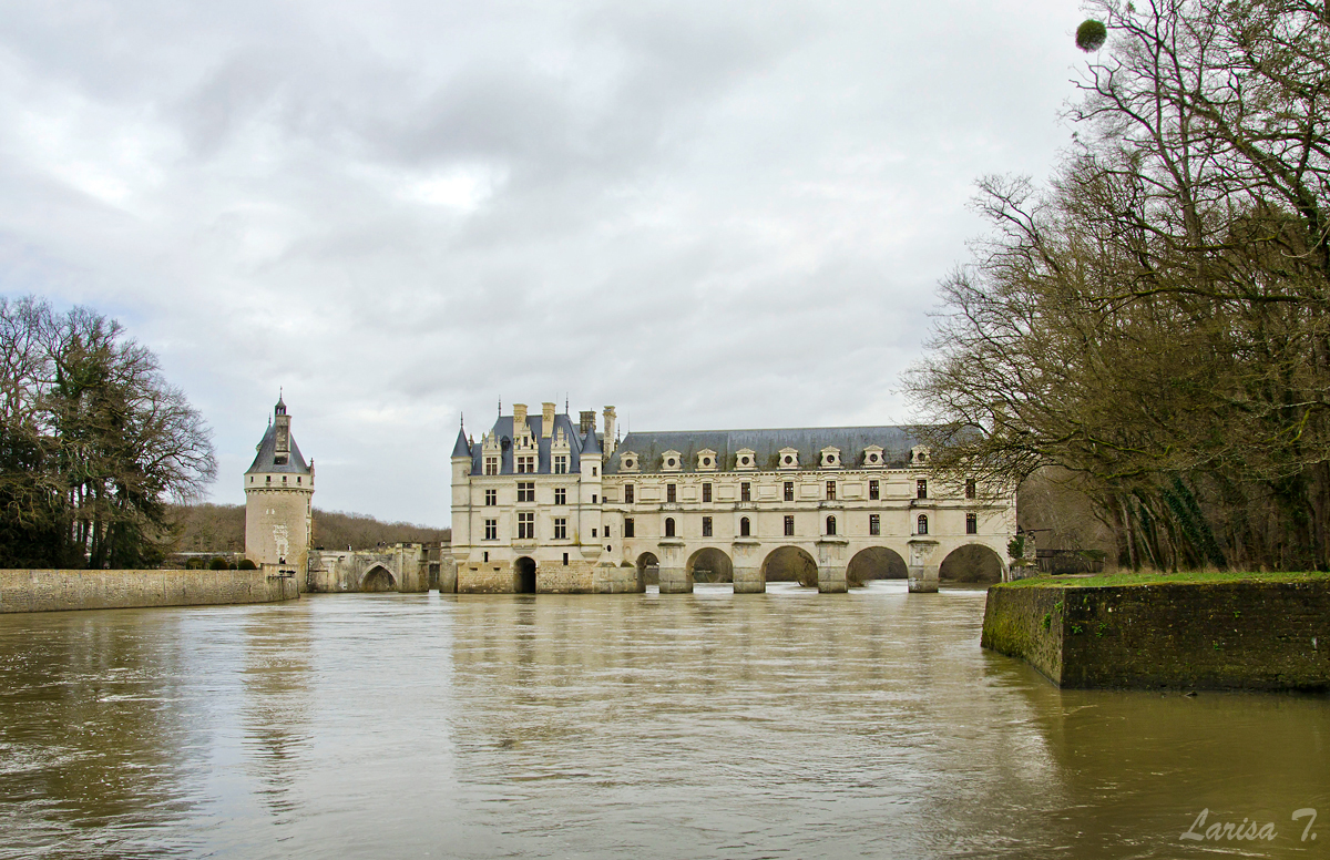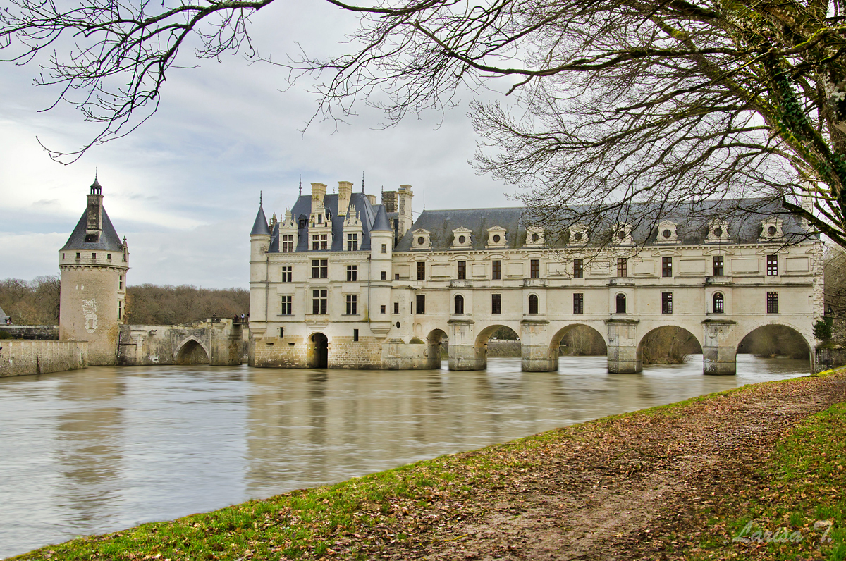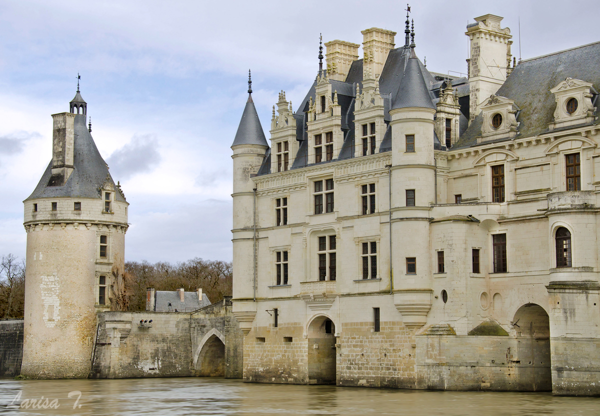 Mulți zic despre Chenonceau că ar fi cel mai frumos castel de pe Valea Loarei. Nu știu dacă într-adevăr așa este, însă judecând după arhitectura sa cu siguranță cele cinci „picioare” peste râul Cher îl fac unic. Domeniul pe care se ridică astăzi construcția a aparținut începând cu anul 1234 familiei Marques, niște oameni înstăriți ai vremii. Castelul pe care îl vedem astăzi era pe atunci inexistent, singurele edificii fiind o fortăreață medievală pe un mal și o moară de apă pe celălalt, legate printr-un pod mobil. Dificultățile financiare, că vorba aia, nu-i ușor să întreții o astfel de proprietate, îi obligă pe la 1500 și ceva pe descendenții Marques să-l vândă unei alte familii dispuse finaciar, familia Bohier. Doamna Bohier decide să dărâme vechea fortăreață, mai puțin donjonul și să o înlocuiască cu una nouă, rectangulară, renascentistă, prevăzută cu turnuri în colțuri, după moda vremii. După moartea celor doi castelul este confiscat de regele François I, aparent din cauza unor iregularități inteprinse de domnul Bohier. Se spune totuși că exproprierea s-a făcut de fapt din dorința regelui, care vrea cu tot dinadinsul să se folosească de domeniu în scopuri personale. Și abia de aici începe partea ce mai frumoasă a poveștii…