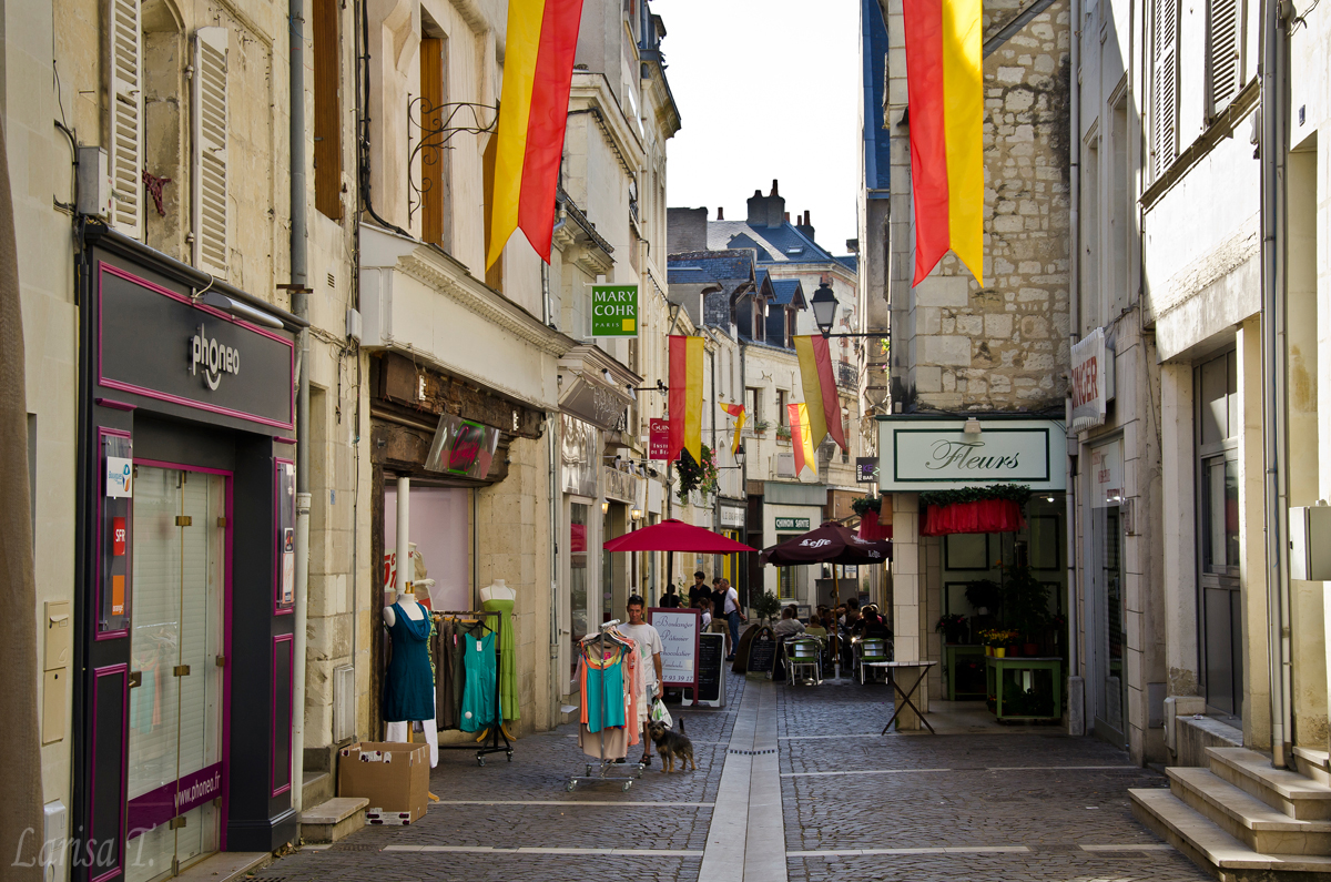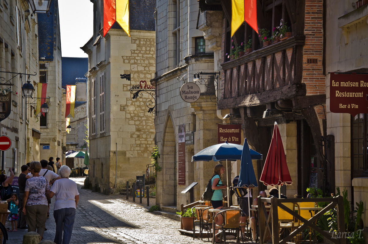 Am citit că, deși existența unei așezări în zonă se confirmă încă din antichitate, micuțul târg de pe malul Viennei cunoaște o dezvoltare importantă un pic mai târziu, odată cu Henri II, conte de Anjou, devenit mai apoi rege al Angliei, care face Chinon una din rezidențele sale preferate, construindu-și în vârful dealului un castel. Adevărul este că și eu în locul lui aș fi ales această locație!  În anii ce urmează, orașul trece în posesia altor regi, sau conți, care continuă să vină aici să locuiască, sau să se refugieze în timpul războaielor. Mai întâi fură regii, odată cu ei curtea, apoi conții, ducii și alți preferați și protejați ai lor și uite așa în tot acest timp, prezența capetelor încoronate a favorizat dezvoltarea orașului și a dus la o importantă creștere și prosperitate economică.