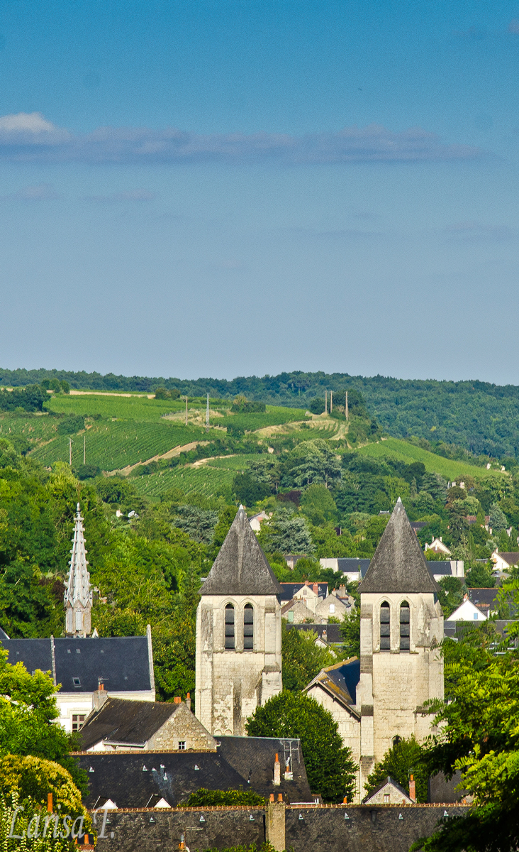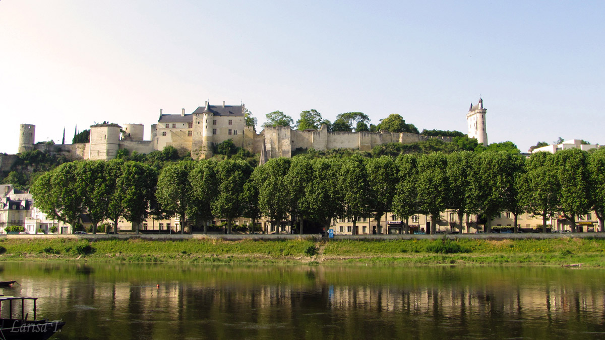 Lăsând la o parte cartea, să vorbim mai bine despre Chinon. Situat în sud-vestul provinciei istorice Touraine, adică cea în care locuiesc eu, exact la granița acesteia cu provincia Anjou, provincii care nu mai există fizic pe harta Franței, dar au existat cândva, Chinon era în Evul Mediu un loc ideal pentru clădirea unui oraș: un curs de apă, așa cum este râul Vienne, ca o importantă cale de comunicație și de comerț, pante abrupte pe care se puteau construi ziduri fortificate, menite să apere orașul de invadatori și o colină în vârful căreia se putea așeza strategic un castel, de pe turnurile căruia s-ar fi putut spraveghea perfect împrejurimile și de ce nu, stăpânii și-ar fi avut, la propriu, supușii la picioare.