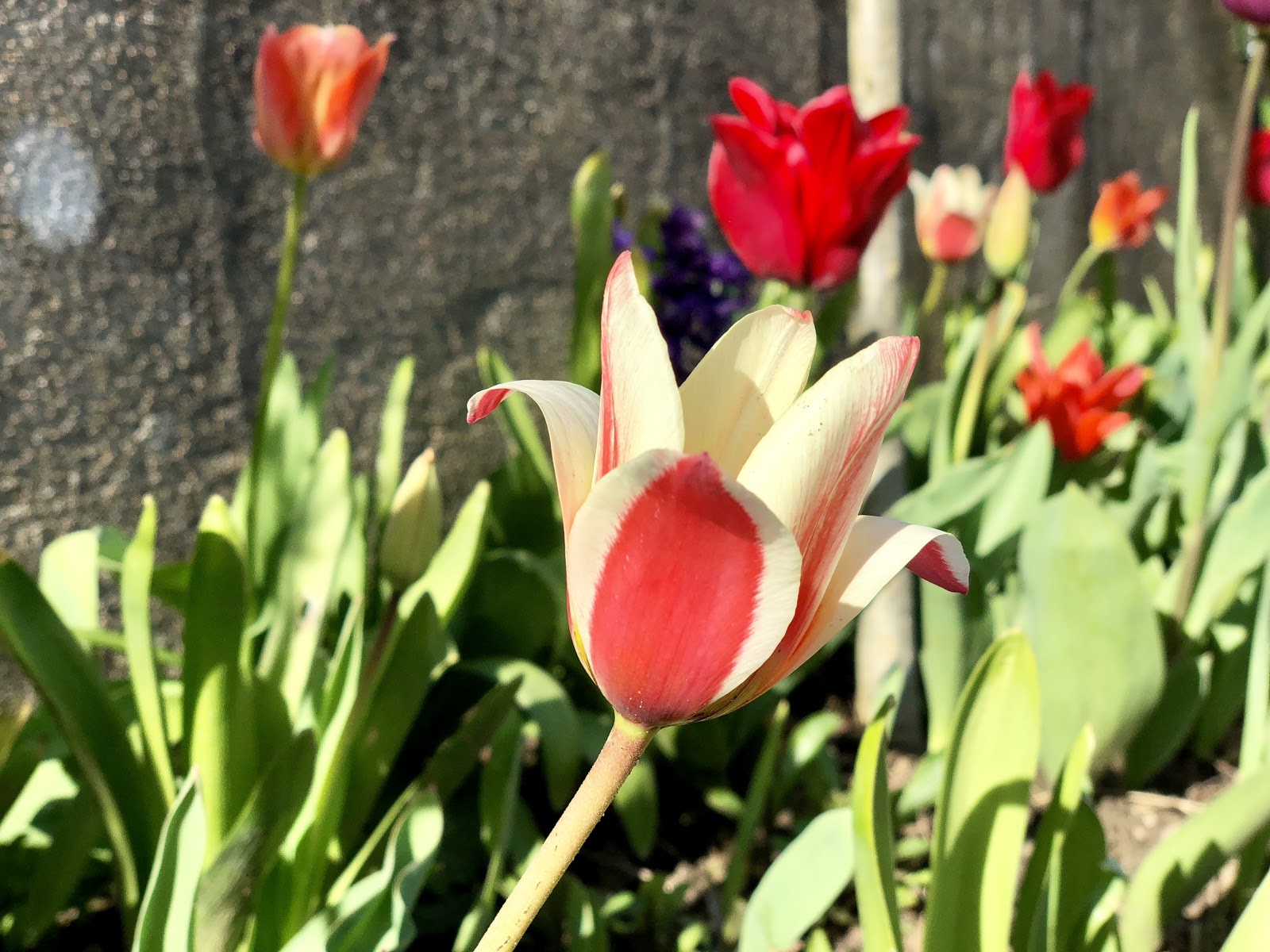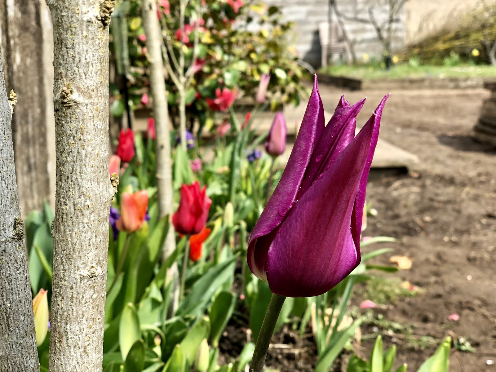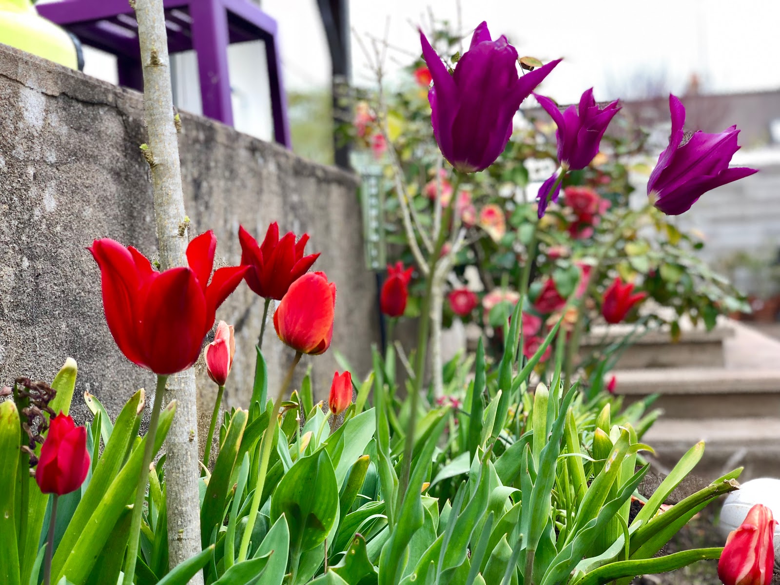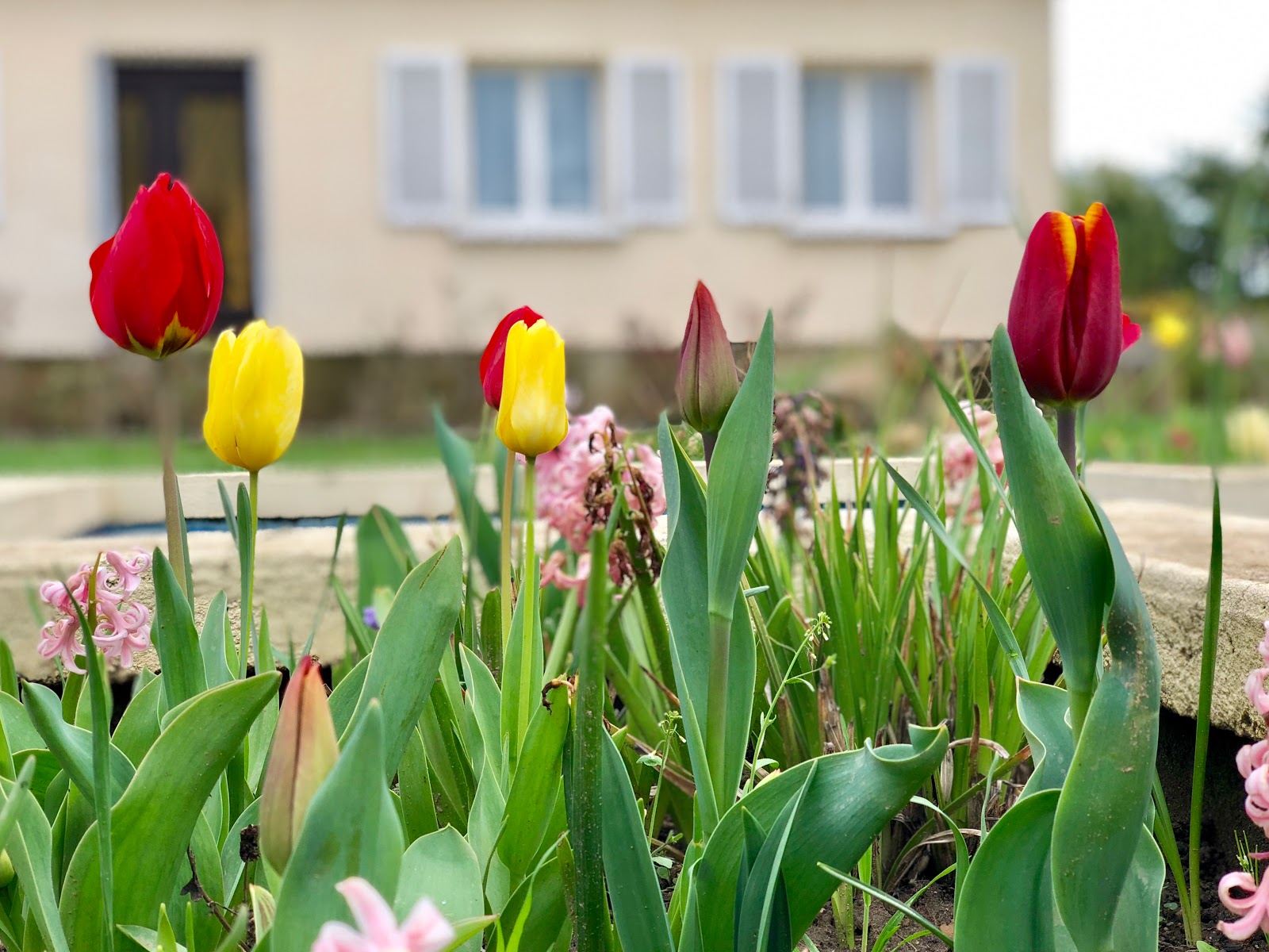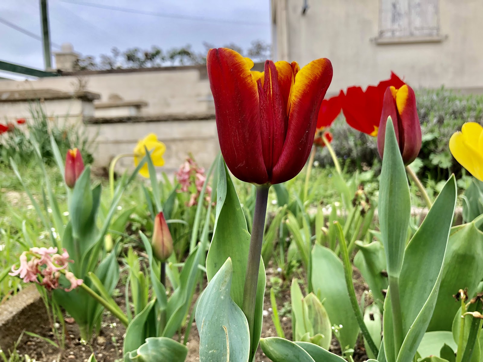 Lalele am găsit o mulțime și când ne-am mutat, majoritatea fiind soiuri rustice în culori clasice, roșu și galben. Nu m-am putut abține totuși și am mai adăugat câteva soiuri și culori, și lalelele se găsesc astăzi în culori și forme ale petalelor extrem de variate, de nici nu știi ce să alegi, le-ai lua parcă pe toate.