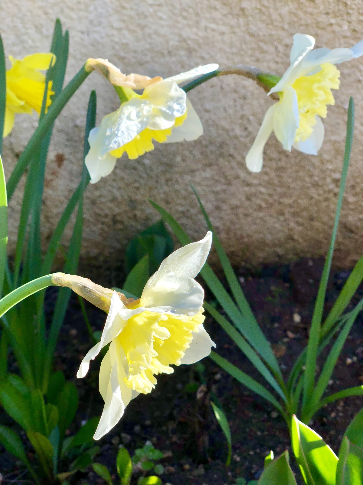 Narcisele sunt toate moștenire de la foștii proprietari, nici n-ar fi fost cazul să cumpăr se înmulțesc într-o veselie. Cele galbene sunt foarte populare în Touraine, primăvara se găsesc absolut în toate curțile. Nu miros, dar înfrumusețează grădina, mai ales când sunt plantate așa, la grămadă, în buchet.