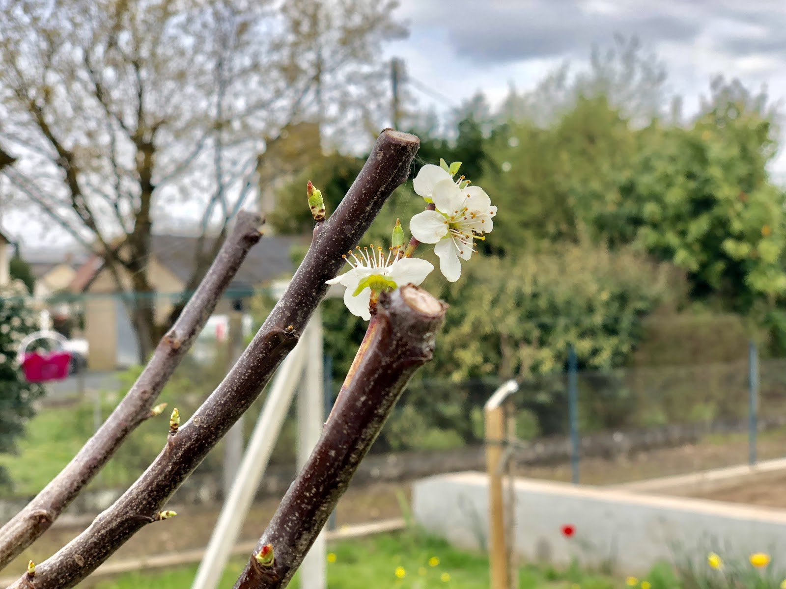 Însă de departe cea mai mare realizare a noastră din ultima vreme este livada, la care visam de multă vreme. Astă toamnă am plantat șase pomi fructiferi, iar în această primăvară am adăugat inca doi: un măr, doi peri, un cais, un prun, un vișin și doi cireși, unul timpuriu și altul tardiv. Și n-am terminat, la toamnă, după ce mai facem loc, intentionăm să adăugăm un piersic, un nectarin și un gutui, plus ceva fructe de pădure, mure, zmeură, coacăze, etc. Și gata, avem tot ce ne trebuie. Deși se găsesc de vânzare prin toate magazinele, noi am ales să luăm pomii, în ciuda prețului, de la o pepinieră locală, atât pentru a avea soiuri de calitate, dar și pentru a putea cere sfaturi avizate personalului de acolo cu privire la soiurile potrivite regiunii noastre, la productivitate și la calitatea fructelor, la tipul de polenizare, etc. Toate sfaturile au s-au dovedit folositoare, pomii s-au prins toți și arată foarte bine, au înfrunzit, ba au a avut și flori. Acum să vedem fructele, în câțiva ani, firește!