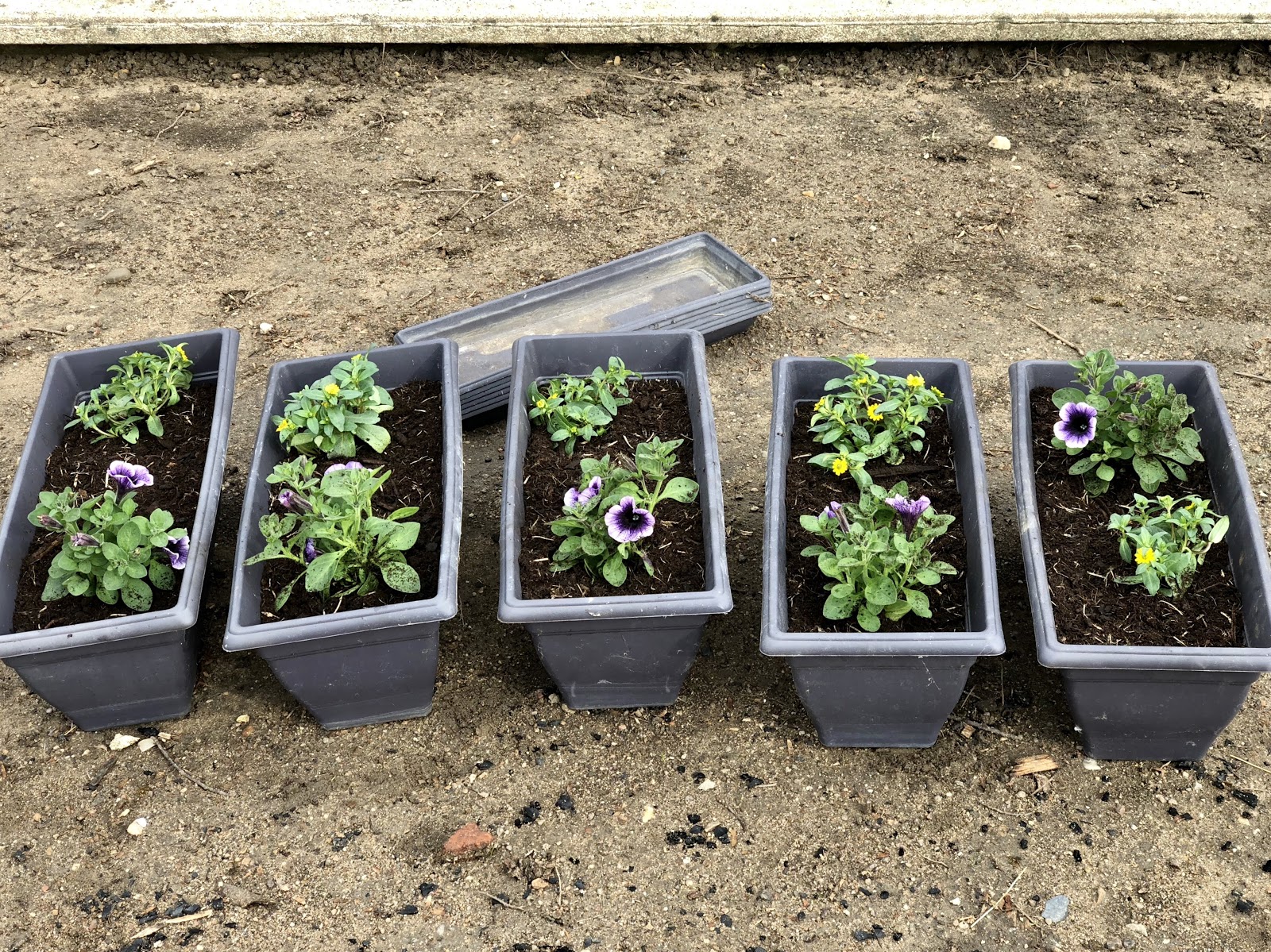Acum vreo două săptămani am plantat ceva flori anuale. În Aprilie toată lumea face plantații, mai exact plantează răsaduri de plante anuale ce vor înflori la vară. Toți vecinii au flori frumoase în ghivece, așa că e un fel de concurență între noi, a cui curte e mai colorată. Desigur, noi suntem la coadă și castigători sunt întotdeauna cei aflați la pensie, ei fiind cei mai sârguincioși și cu cel mai mult timp liber la dispoziție. Cu toate acestea, în fiecare an plantăm și noi câteva plante anuale, în jardiniere sau direct în pămant. Magazinele de specialitate sunt foarte ofertante în sezon, nici nu știi ce să alegi. Nu prea ne ies nouă jardinierele, deși am încercat diverse combinații de la an la an. Iar dacă în primul an m-am documentat cu atenție, anul acesta am luat la nimereală ce mi-a căzut în mână, combinând petunii mov cu niște floricele galbene, am uitat cum se cheamă. Momentan arată incă bine, nu s-au pleoștit, să vedem ce o să iasă peste vară.