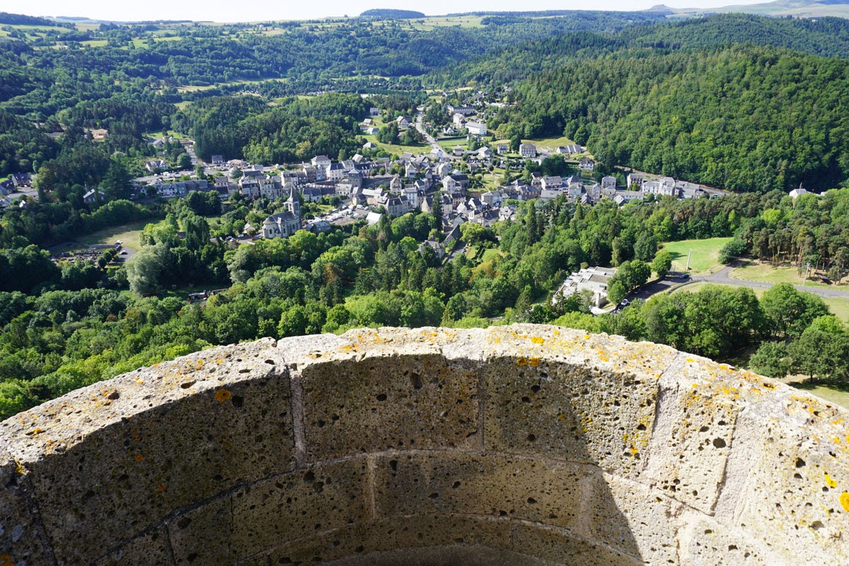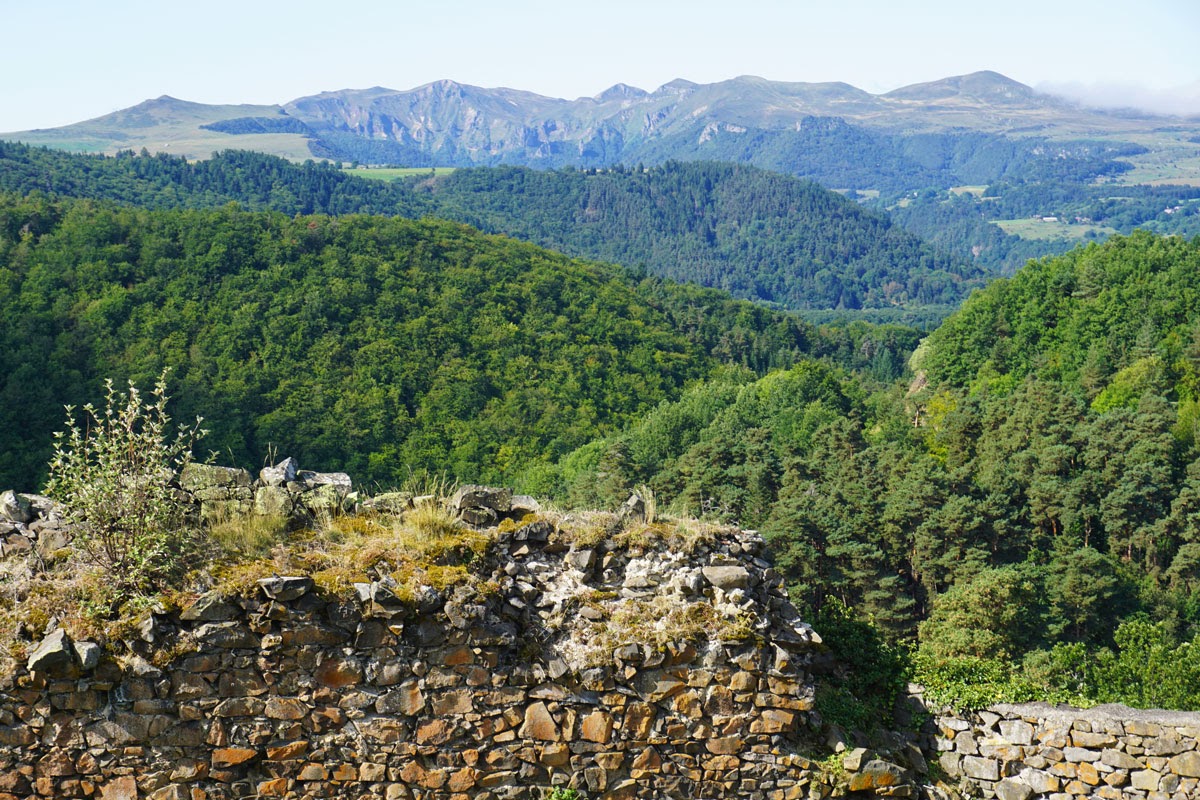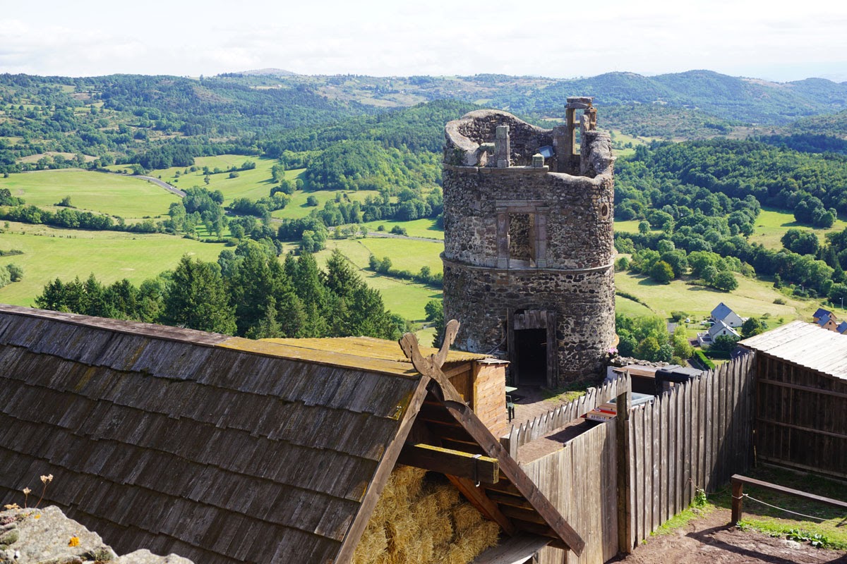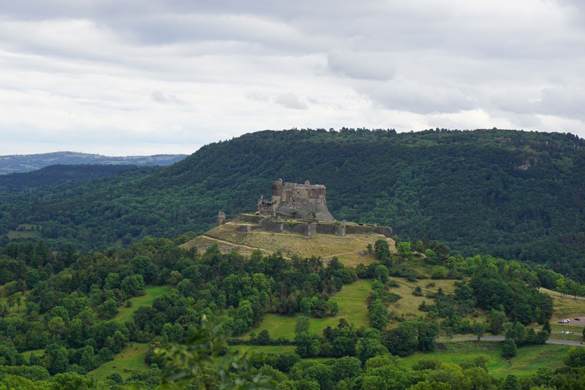 Când am făcut planul pentru vacanța în Auvergne m-am orientat inițial spre stațiunea Mont Dore ca tabără de bază, așa cum făcusem și în iarna lui 2013. Voiam un loc cât de cât turistic, în sensul de nu prea izolat, astfel încât să putem face diverse activități în zonă și fără să luăm mașina dacă ar fi fost cazul. Găsisem și un camping drăguț la Mont Dore, cu niște căsuțe din lemn foarte faine, numai că atunci când m-am mobilizat să fac rezervarea nu am mai găsit locuri. Așa că am extins aria de căutare, iar atenția mi s-a oprit de îndată la Murol, unde nu numai că erau concentrate pe harta google o mulțime de campinguri, dar părea și o zonă de interes turistic mărișor, cu peisaje faine, posibilități de drumeții, pescuit și bălăceală – deși, din păcate, pentru aceasta nu a fost cazul – cu lacul Chambon si un orășel drăguț, ceva magazine și restaurante și chiar un castel, un fel de fortăreață medievală cocoțată pe un pinten stâncos. Aici e de noi, am zis! Nu puteam plecăm de acolo fără un popas la castel, așa că într-una din zile ne-am pornit într-acolo. Și ce zi! Cea mai însorită din tot sejurul nostru în Auvergne.