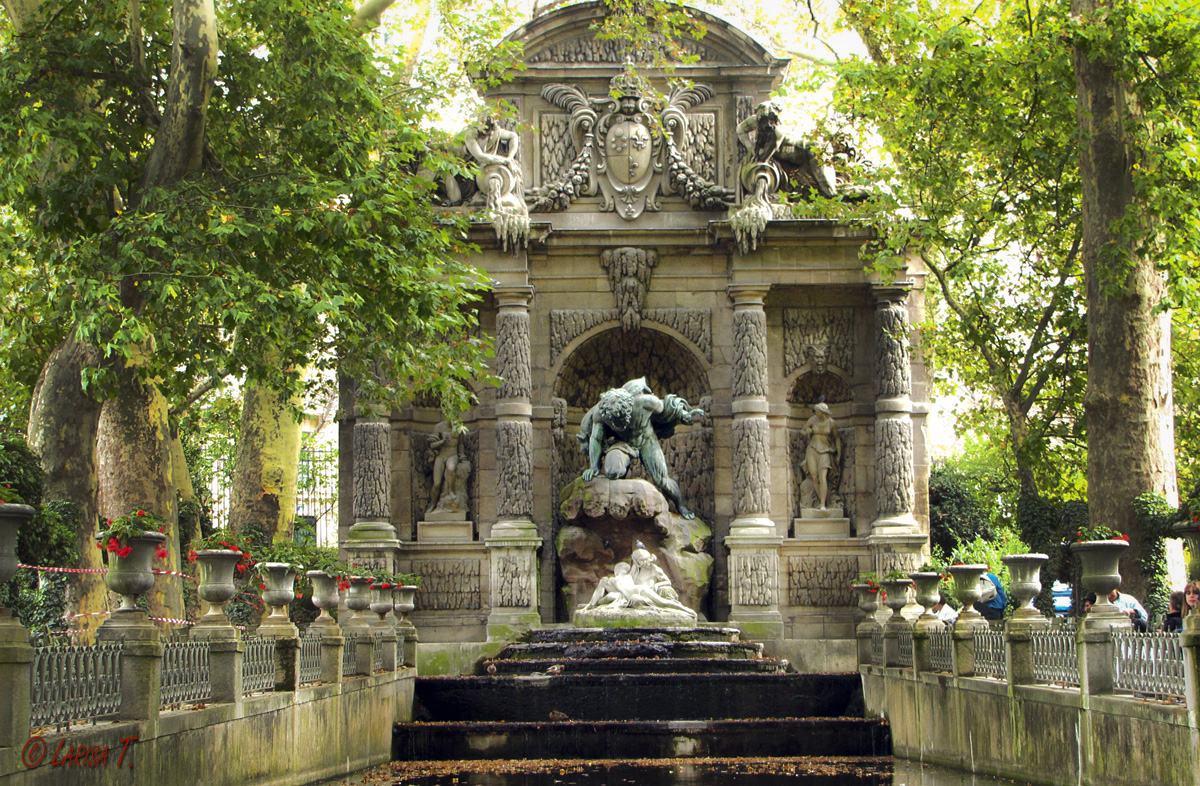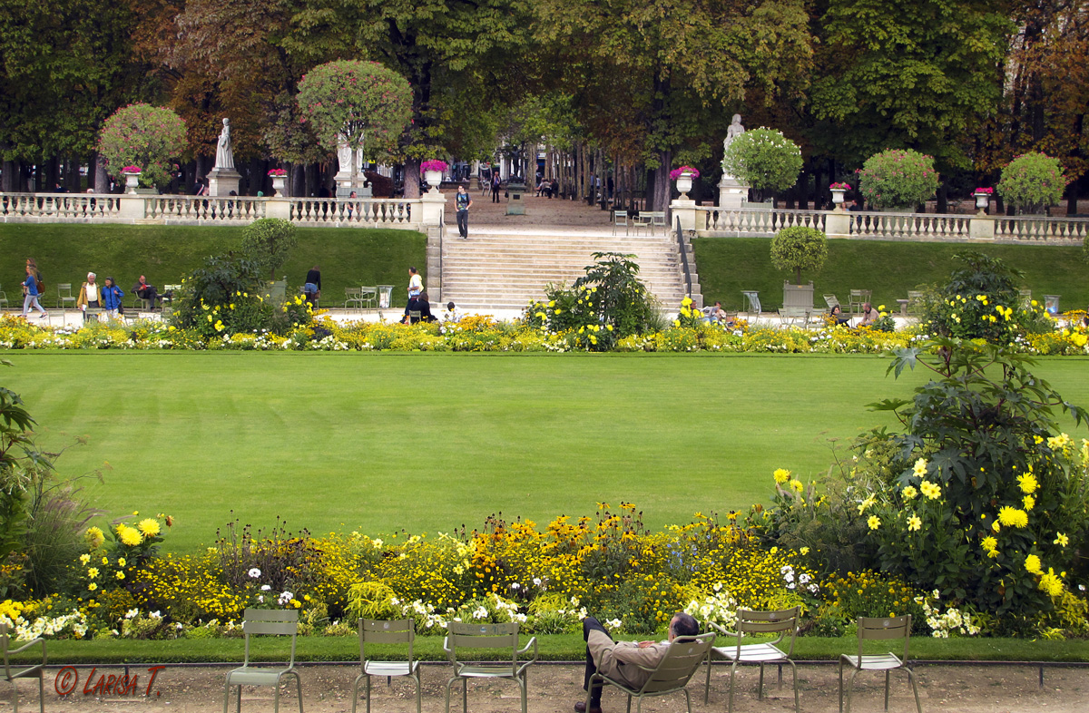 Gradina Luxembourg este situata in Cartierul Latin, aproape de Saint Germain des Prés si se intinde pe 23 de hectare, din care doar 21 sunt deschise publicului, sau cel putin asa am citit, ca nu am masurat personal. Jardin du Luxembourg inconjoara palatul Luxembourg, astazi sediul senatului Frantei si ambele au fost realizate pe la 1612, la initiativa Mariei de Medici. Fiindca regina era originara din Florenta, fireste ca sufletul ei italian se reflecta atat in arhitectura cladirii, inspirata de palatul Pitti, cat si in designul parcului, amenajat dupa gradina florentina Bobolli. Deci, iata un colt de Italia in mijlocul Parisului! De-a lungul timpului, dupa moartea Mariei de Medici, gradina si palatul sufera diverse schimbari, in mai multe reprize si ajung chiar inchisoare in timpul Revolutiei Franceze, sau sediu de stat major al flotei aeriene, in timpul ocupatiei germane din al Doilea Razboi Mondial. Dupa ce situatia se calmeaza, ambele ajung in proprietatea statului francez, unde se gasesc si astazi.