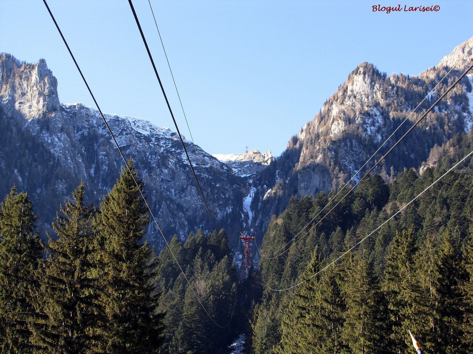 Am avut și o mică intenție de a urca sus pe platou pe jos. Drumul din Sinaia cădea, l-am făcut de prea multe ori, restul văilor sunt închise iarna. ținând cont de faptul că zăpadă nu prea era, m-am gândit totuși că ar putea merge traseul Jepii Mari, care oricum îl cunoșteam bine pe timp de vară. Ajunși în Bușteni, ne-am temut că ar putea fi acoperită de gheață. în afară de asta, îmi era puțin teamă și pentru sănătatea mea, că aș fi transpirat la urcare și aș fi inspirat mult aer rece, ceea ce nu îmi era indicat, așa că am luat drumul telecabinei.