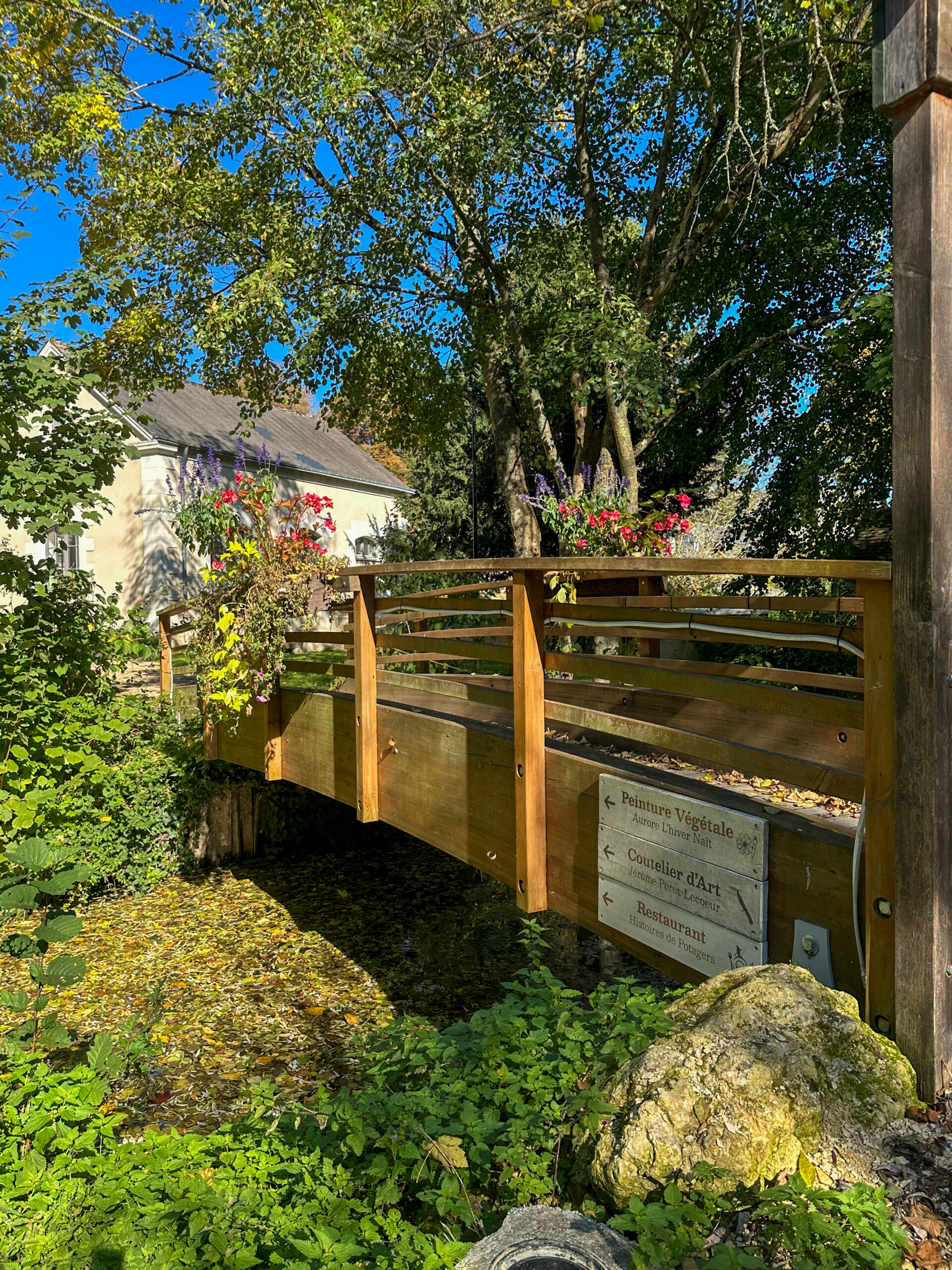 Am început plimbarea pe traseul Le Balcon de l’Indrois, poate cel mai frumos punct din satul Montrésor, mai ales în această perioadă a anului. Poteca urmărește râul Indrois și șerpuiește printre copaci care, în octombrie, par pictați în nuanțe de auriu, arămiu și roșu închis. Lumina blândă de toamnă se reflecta pe apă într-un fel aparte, caldă, joasă, dând impresia că satul e scăldat într-o strălucire moale, aproape ireală. E acel tip de lumină care te face să încetinești pasul, să inspiri adânc și să te uiți de două ori la același loc.