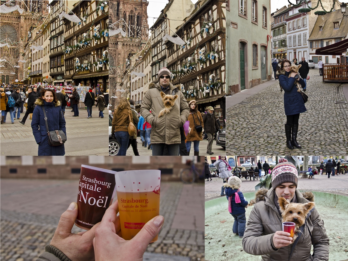Nu am vizitat niciodata Straßburgul iarna, doar primavara si vara. Imaginile pe care le prezinti aici sunt fantastice! O atmosfera extraordinara de sarbatoare se simte în fiecare detaliu al strazilor! Mi-au placut mult cladirile împopotonate cu jucarii de plus! :)) Dar cel mai mult îmi place "jucaria de plus" ce sta în jacheta sotului tau! :)) Azorel este un dulce!