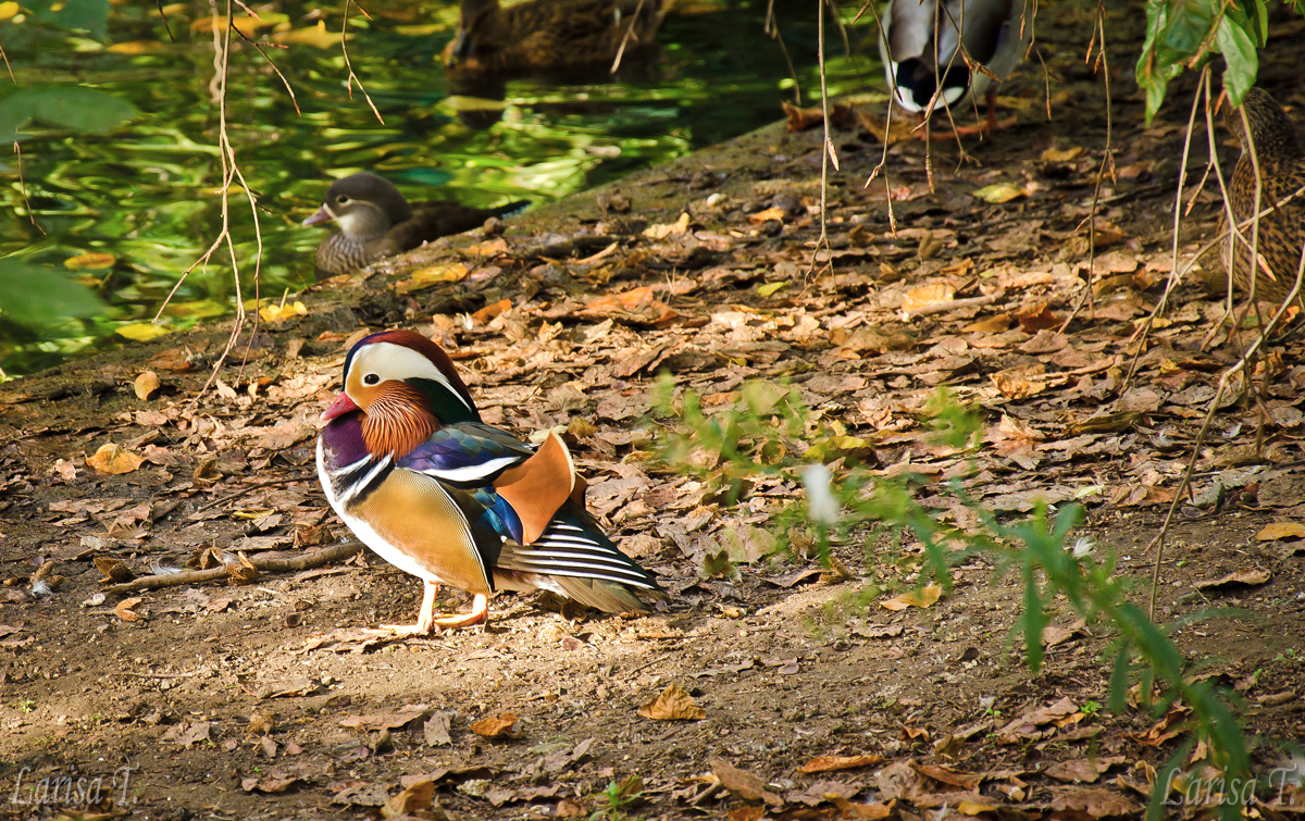 Rățușca mandarin ne-ai mai prezentat-o și toamna trecuta și nu am uitat de ea!;) Îmi place tare mult… Și frunzele care sunt încă verzi… În fața blocului meu e o viță de vie și are frunzele roșii rău!:))