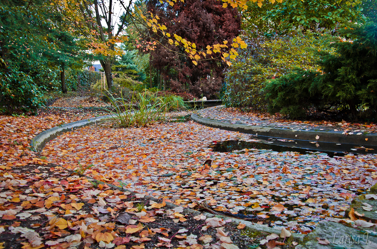 Canalul cu frunze si mie mi s-a parut superb. Nu stiu daca a fost aranjat asa artificial, sau pur si simplu chiar s-au scuturat frunzele natural in apa, dar arata intr-un mare fel.
