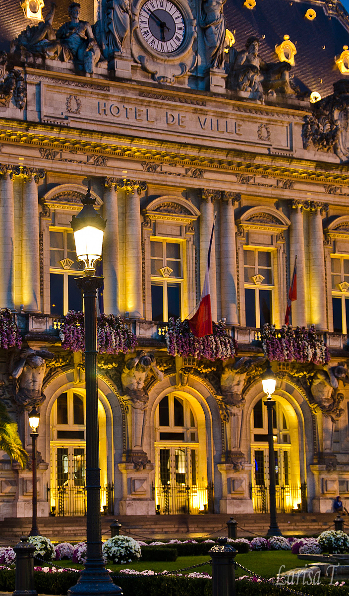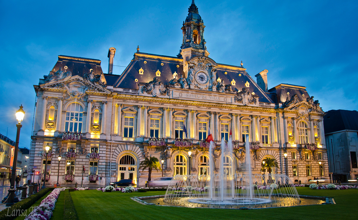Revenind la duminică, nu prea am realizat mare lucru, aproape că l-am cărat degeaba, decât vreo câteva poze în fața primăriei. Tours nu prea este un oraș super-luminat, cum sunt cele mari în general, unde să ai ce să pozezi noaptea. În afară de câteva piețe, poate centrul istoric, sau „celebrul” pod de piatră, altceva luminat feeric nu prea este. Așa că atunci când n-am ce face, în serile triste de noiembrie, când plouă mărunt și doar câțiva rătăciți umblă pe stradă, îmi iau aparatul și trepiedul la spinare și merg să pozez primăria. Nu mai știu câte poze am strâns pe calculator, dar pe ultimele vi le arăt și vouă. Măcar am pe ce să-mi exersez pasiunea, nu?