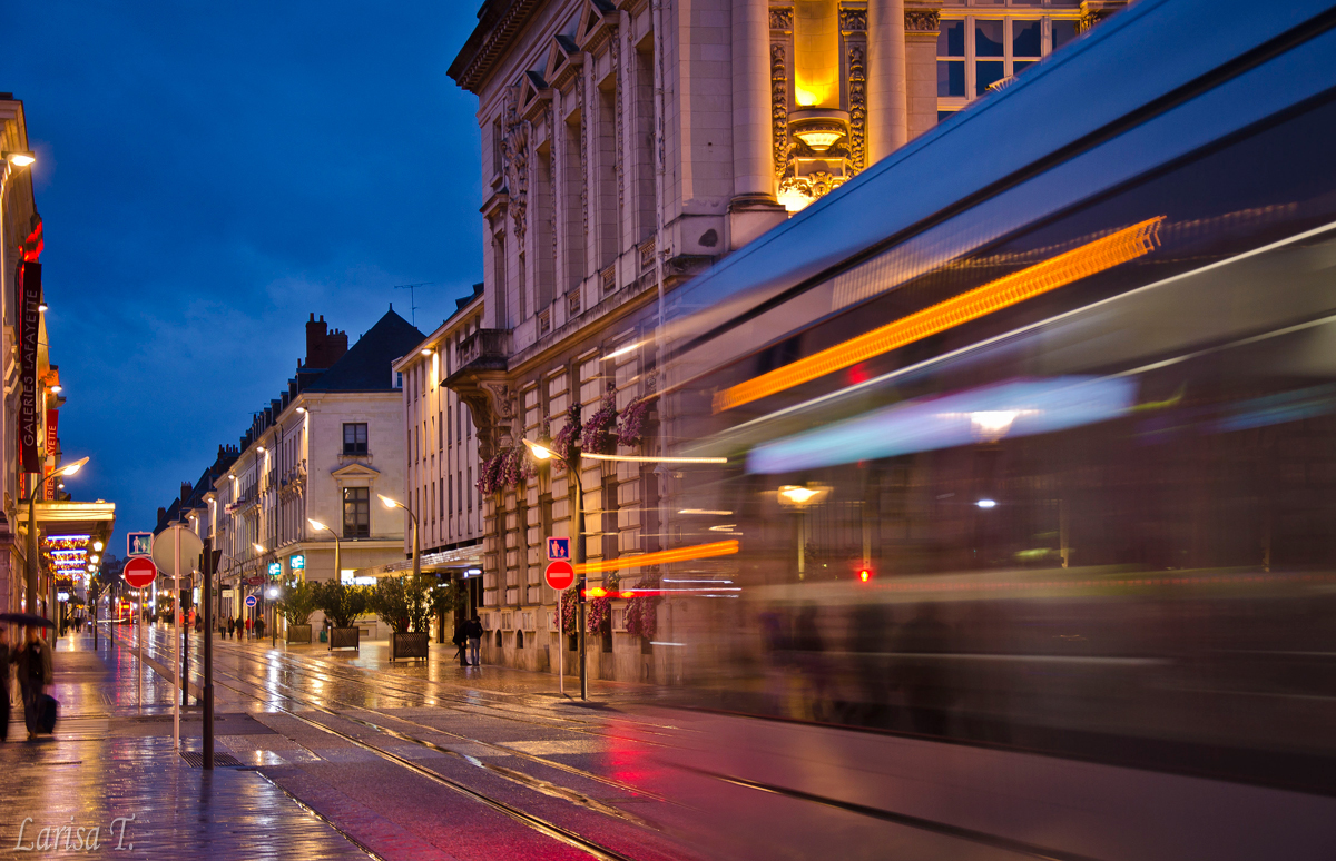 De obicei duminica, când nu suntem plecați pe nicăieri, ieșim la o scurtă plimbare prin oraș, pentru o gură de aer proaspăt. E tare plăcut; Tours duminica este aproape gol. Dacă sâmbăta pe străzi zici că-i manifestație, toată lumea ieșind cu mic cu mare pe la sindrofii, duminica rar mai vezi pe cineva. Duminica trecută am ieșit mai pe înserat, nu c-ar fi greu acum, doar se însereaza la 5 și mi-am luat și trepiedul cu mine. Aparatul foto îl aveam oricum; îl port des cu mine, chiar dacă de cele mai multe ori nu fotografiez nimic special. Iar atunci când îmi iese ceva special în cale, ca de exemplu un foarte clar și superb curcubeu, desigur că-l am acasă. Dar asta este altă poveste….