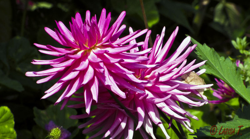 Culmea este ca, vara aceasta, plimbarile mele au fost foarte rare, dupa ce asta iarna-primavara mergeam aproape in fiecare zi …Nu stiu exact de ce.  Gradina este foarte dichisita, eleganta, ingrijita, genul ala de gradina engleza, aici in mijlocul Frantei, creata, culmea, de doi frati germani.  O gradina „multinationala” am putea spune :)).  In fiecare luna aproape, peisajul cu tot cu plante se schimba, asa ca de fiecare data gasesti ceva nou de vazut sau pozat, ca sa nu te plictisesti niciodata. Saptamana asta am gasit niste flori asa, de sfarsit de vara. Eu una habar nu am cum se numesc, poate ma ajutati voi, stiu doar ca e o nebunie sa le admiri.