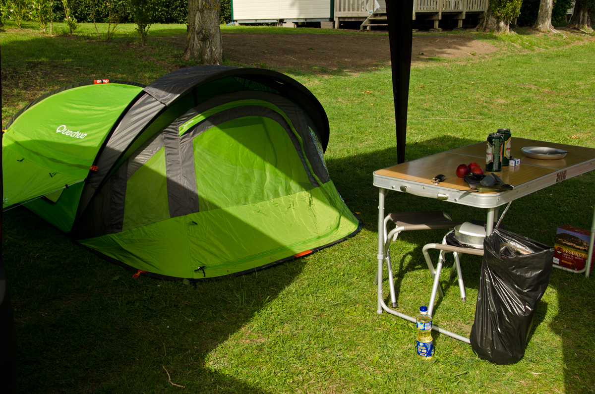 Despre echipamentul de camping se poate scrie o adevărată enciclopedie, dar ca și exemplu, echipamentul nostru dormit cuprinde două corturi Quechua, unul din acela instant de-l arunci și se face, și încă unul ceva mai mare și rezistent cu lumină înăuntru (pe baterii). La corturi se mai adaugă saci de dormit, în general de trei sezoane (mai bine să-mi fie cald decât frig), două perne de camping, și o saltea gonflabilă. Echipamentele pentru dormit la au evoluat foarte mult, iar oferta pentru ele în magazine de specialitate, gen Decathlon, este extrem de variată. Pentru anii următori ne gândim și noi la un cort mai încăpător, înalt cât stai în el în picioare, cu 2-3 încăperi, astfel încât să ne putem schimba și depozita bagajele fără probleme.Eu rămân de fiecare dată uimită când văd prin campinguri ce „vile” au unii.
