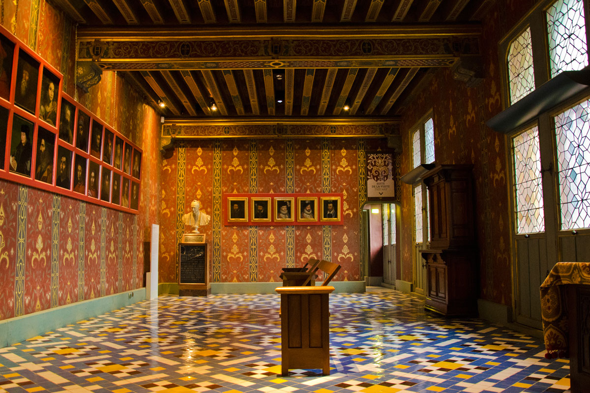 Apartamentele de la primul etaj adăpostesc Muzeul de Arte Frumoase. Cele 8 Săli și galeria adăpostind un ansamblu de picturi din secolele XVI-XIX, tapițerii franceze și flamande și sculpturi din secolul XIX.