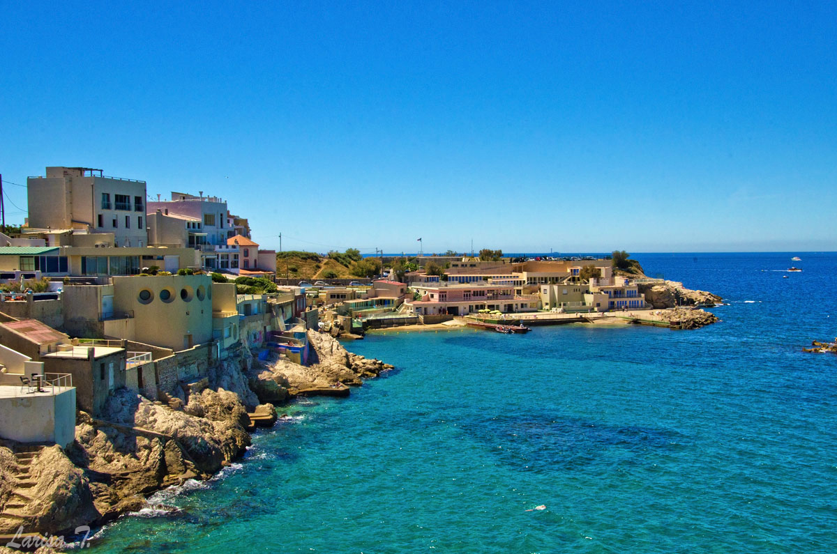 Pe Cornișă m-a dus prima dată trenulețul. Atunci n-am putut să fac multe poze din mers, dar în ziua următoare mi-am convins soțul să meargă cu mine. Știa locul, că a petrecut vreo câteva luni la Marsilia înainte să ne cunoaștem, îi plăcea și lui, așa că n-a fost greu. Am lungit șoseaua ce șerpuiește pe malul Mediteranei cu mașina, apoi am parcat și am lut-o un pic la picior. Ah, ce mi-au plăcut plajele și terasele, deschiderea spre albastrul infinit al mării și insulele stâncoase din zare! Ceva mai ferită de mulțimea turiștilor din Port, Cornișa mi s-a părut o oază de liniște în acel oraș agitat. Sau cel puțin așa era în acea dimineață însorită. Și-au mai fost și alte locuri pe unde am ajuns mai mult sau mai puțin întâmplător, dar n-are rost să le iau pe toate la rând.