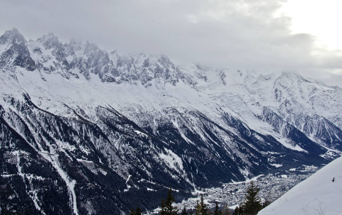Proastă idee! Chamonix-Mont-Blanc mi s-a părut cel mai neprimitor loc dintre toate cele pe care l-am văzut în Alpii Francezi și n-am să-nțeleg niciodată de ce o mulțime de oameni (și mă refer aici la cei care nu vin pentru vreun traseu montan anume) se înghesuie acolo, unde totul e scump mega-turistic și comercial, când sunt o mulțime de alte stațiuni autentice în împrejurimi. În fine, fiecare cu gusturile lui, eu dacă n-aș vrea să escaladez Mont Blancul aș alege un sat mai liniștit. Așa că n-am zăbovit prea mult în Chamonix. De fapt nici nu ne-am dat jos din mașină, după un tur prin oraș ne-am gândit că n-am avea ce face, mai ales iarnă pe o vreme extrem de mohorâtă.