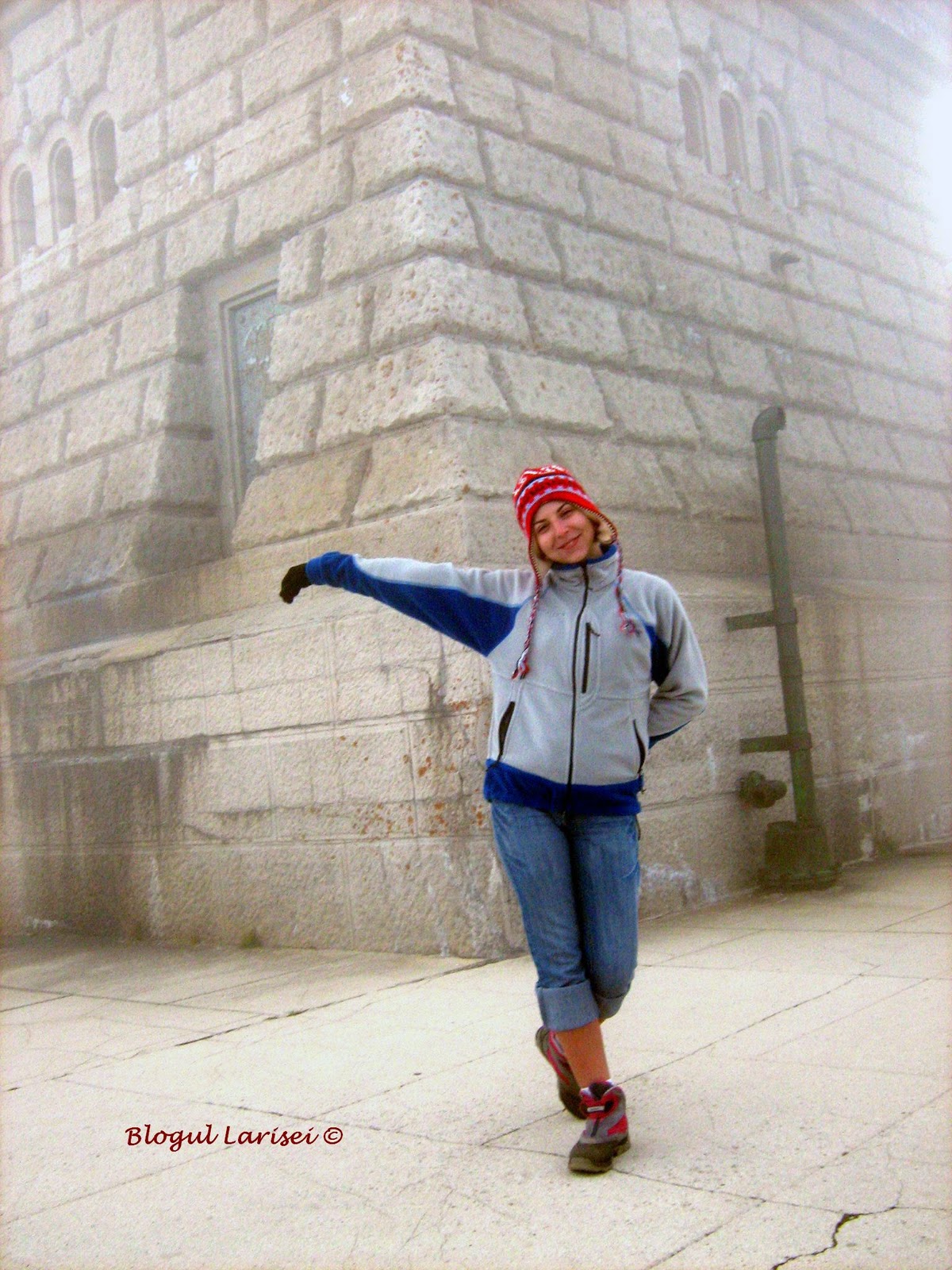 Regasim si „restul” grupului, prin ceata densa in care nu vedeai la un metru in fata ta si dupa o scurta pauza de un sandvis coboram mai departe, pe traseul spre Cabana Caraiman. Pana la Cabana Caraiman urmam Brana Mare a Caraimanului, traseu categoric interzis celor cu rau de inaltime. Peisajul de pe Brana iti taie rasuflarea, dar trebuie parcurs cu multa atentie, deoarece sunt cateva portiuni destul de accidentate. In plus este interzis iarna si pe vreme rea, ca de exemplu ceata, de care am avut si noi ghinion. Dar cu atentie am reusit, desi nu recomand.