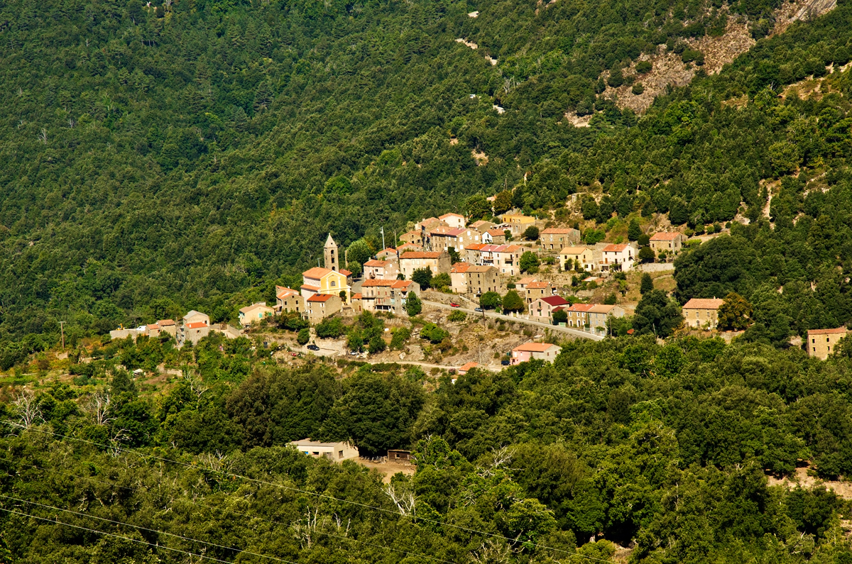 Din Porto am luat-o pe o scurtătură ceva mai muntoasă, „șoptită” de GPS. Am început prin a urca șoseaua spre Evisa, doar că exact înainte de sat am făcut la dreapta, pe o altă șosea ce șerpuiește spre satul Marignana. Cred că pe nici un alt drum din Corsica n-am simțit mai aproape de prăpastie ca aici, însă la final a meritat toată teama: Marignana este satul din Corsica care mi-a plăcut cel mai tare. N-aș putea să vă explic exact de ce, poate or fi munții pe care este „aruncat”, sau drumul extrem de anevoios ce duce la el; poate o fi fost liniștea absolută și lumina caldă care-l învăluiau în dimineața cu pricina, cert este că Marignana mi-a intrat inexplicabil în suflet imediat după prima roată pe care am pus-o pe drumul principal ce-l traversează, printre casele vechi și ponosite de piatră, astfel că nu m-am putut abține să nu mă opresc oleacă.