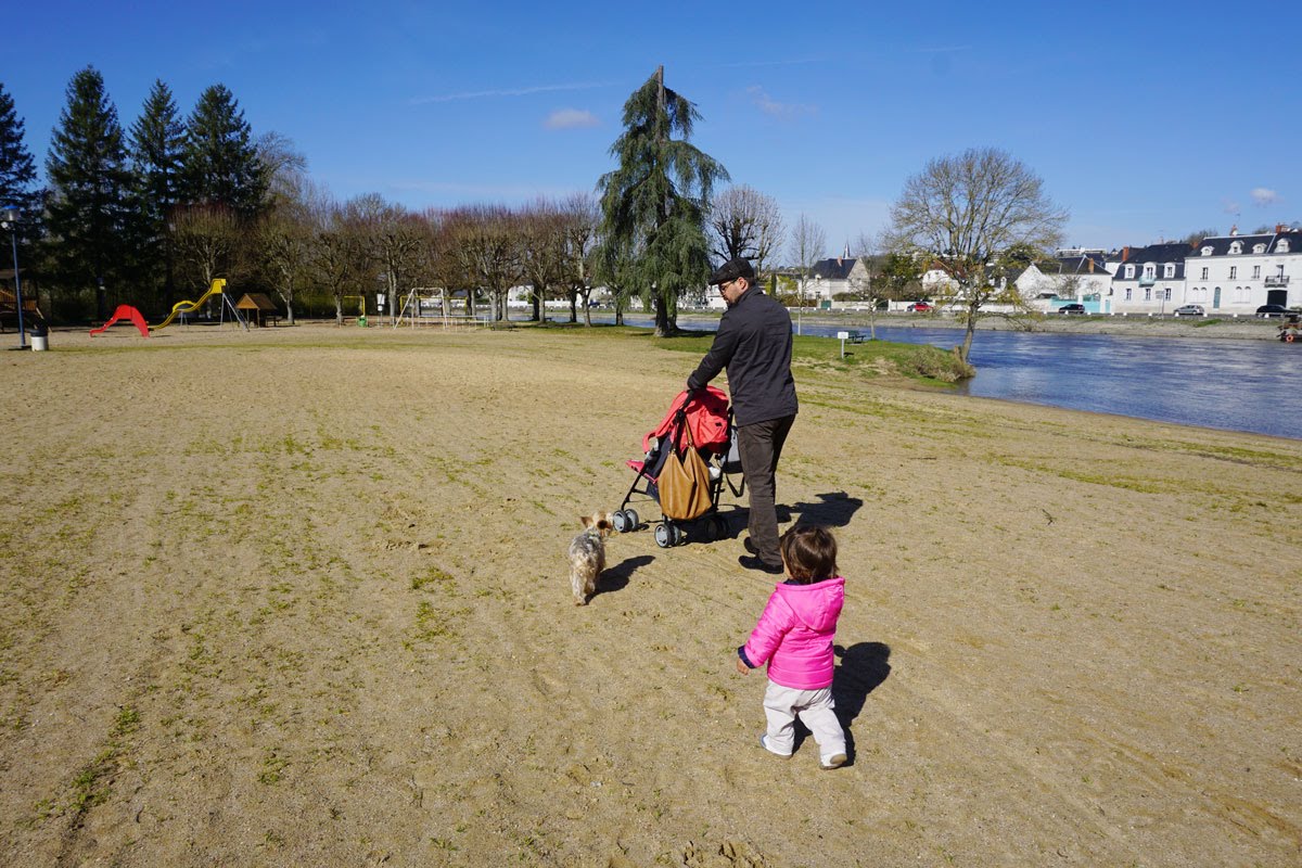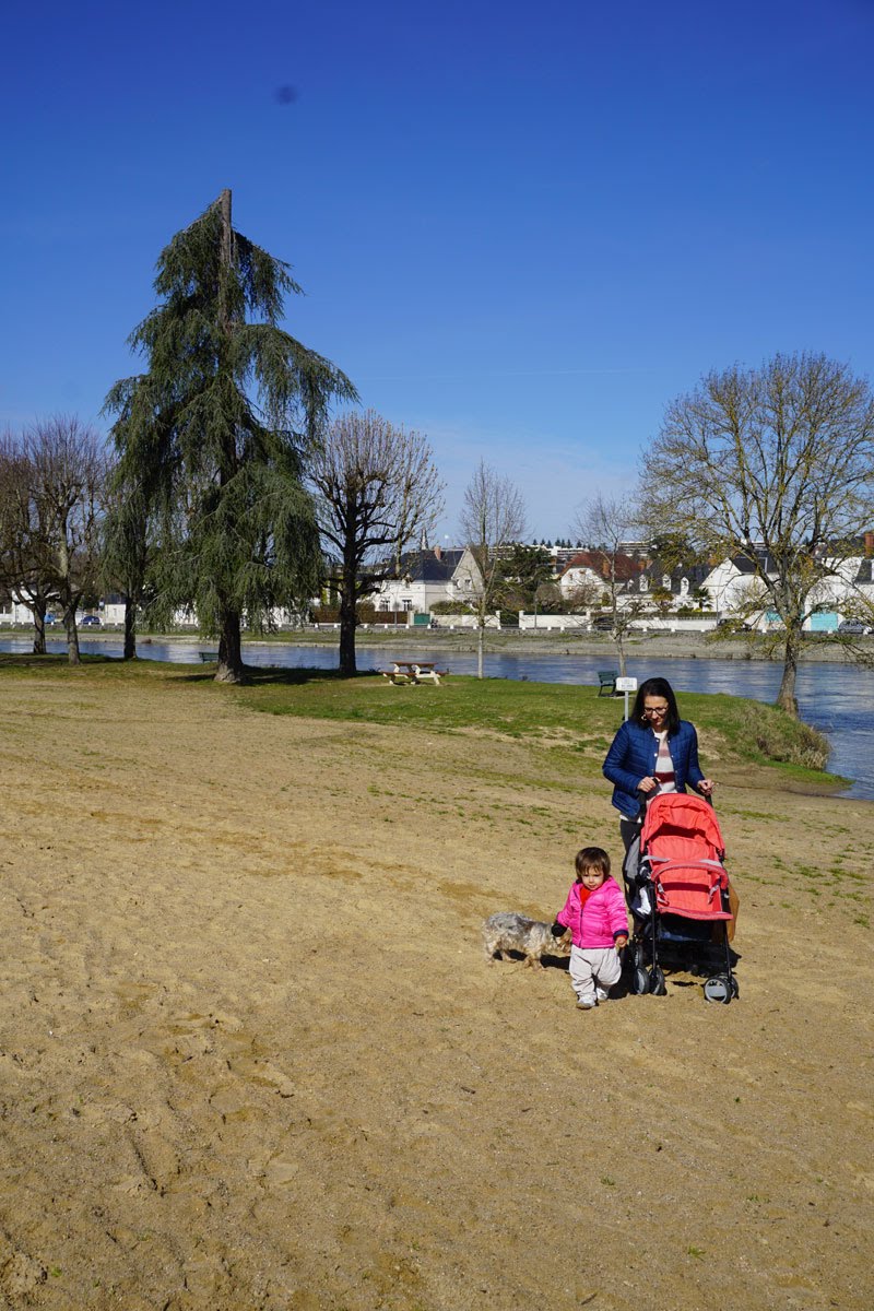 După ce ne-am plimbat prin centru am ieșit la malul Cherului unde am lungit promenada, după care am traversat podul pe malul opus unde ochisem un parc drăgut. Podul peste Cher de la Montrichard, emblemă a orașului alături de donjon, pare teleportat parcă din Evul Mediu în zilele noastre. Construit de englezi, pe vremea când stăpaneau Anjou, pe el trecea drumul ce lega Paris de Bordeaux. Podul original a fost demolat în secolul XIX, odată cu canalizarea râului Cher, modelul pe care îl vedem astăzi fiind o replică aproape identică a celui de la 1680.
