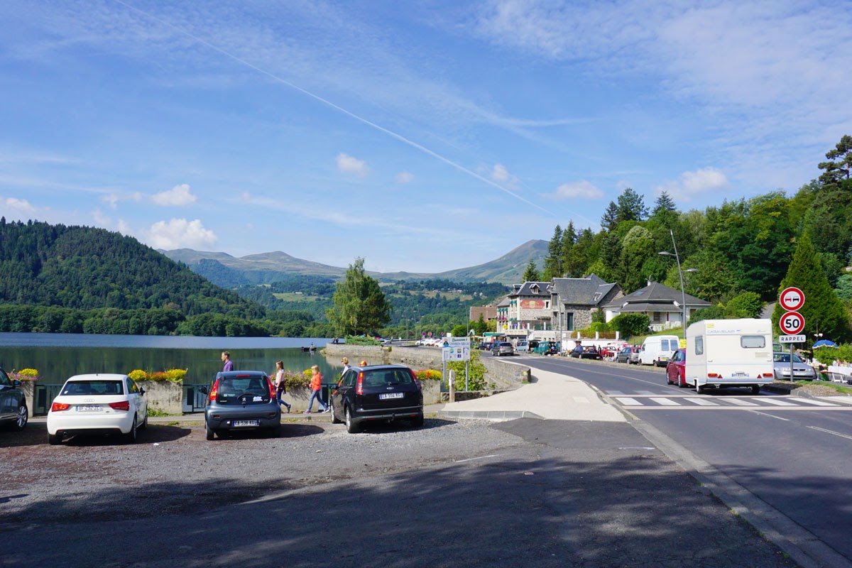 Dintre toate aceste activități noi ne-am orientat spre traseul care face turul lacului, eu mai ales, și spre pescuit, al meu soț, desigur. Și chiar a prins câțiva crapi spre bucuria lui și a noastră, crapi pe care i-am prăjit și i-am mâncat la cină. La prânz în schimb am mâncat la unul dintre restaurantele de pe malul lacului, a cărui terasă oferea o panoramă superbă asupra lacului și munților din jur, profitând și de soarele plăcut din acea zi. Am ales un preparat local, truffade auvergnade, preparat delicios deși cam greu, pe bază de cartofi, costiță de porc și brânză locală Cantal, parfumat cu usturoi și servit cu jambon și salată verde.