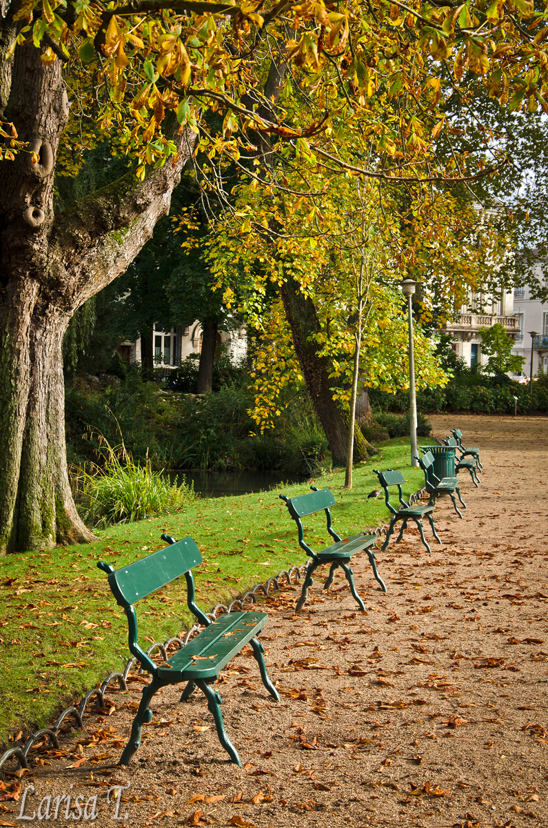Dar până la iarnă mai este, deocamdată să ne bucurăm de culorile toamnei, alea care la mine în oraș lipsesc cu desăvârșire. În Touraine totul este destul de verde, încât, dacă n-ar fi frig, aș putea băga mâna în foc că suntem în luna august. Hai, în septembrie! Tot mă uit cu atenție la copaci și mă întreb în sinea mea băi frate, când s-or colora ăștia frumos, să ies și eu la pozat, să realizez niște opere de artă tomantice. Tot privesc, tot analizez, prin parc, prin oraș, pe lângă oraș și ajung la concluzia că fie anotimpurile au luat-o razna, fie culorile se vor schimba brusc, fie eu nu le mai distig bine. Sau poate frunzele aici se vor scutura direct verzi, cine știe ?! Dar sunt convinsă că o să vină ele și culorile acelea fantastic de ruginii,  mai spre sfârșitul lunii, tocmai de aceea mi-am programat weekendul  viitor o ieșire la Castelul Cheverny, unul dintre puținele care mi-au rămas de vizitat. Asta dacă nu plouă, desigur! Am văzut pe internet că au acolo o frumoasă grădină englezească și deja mi-o închipui desăvârșit de maro-ruginie și pe mine plimbându-mă că o contesă pe covorul de frunze uscate. Bine-ar fi să fie soare, că v-am mai spus doar, zilele fără nori în Touraine sunt numărate. Apropo de vreme închisă, de care dacă cumva vă e dor, nu ezitați să-mi spuneți, să vă trimit o țâră, că am din belșug aici, mă gândeam într-o seară în timp ce-l plimbam pe Azorel prin cartier, pe o vreme din aia, pe care nu scoți nici un câine afară, că abia când e nor, plouă mărunt și miroase a frig, îmi recunosc orașul.