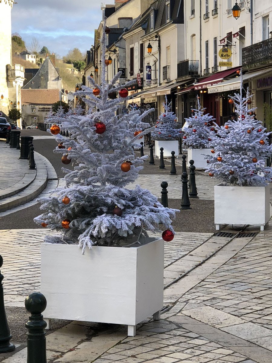 În contrast deplin cu vremea de afară și total diferită de luna precedentă, când totul era pustiu, aproape dezolant, atmosfera este foarte animată în decembrie la malurile Loarei, odată cu apropierea sărbătorilor. Străzile sunt frumos luminate, modest desigur față de cele ale marilor orase, dar suficient cât să placă privirii, vitrinele magazinelor indeamnă la cumpărături, iar piețele de Crăciun și-au deschis porțile. Și deși afară miroase a frig, oamenii prinși de frenezia cadourilor mișună în număr foarte mare prin oraș, ceea ce mă face să cred că această ultimă lună din an este cea mai aglomerată în Touraine.