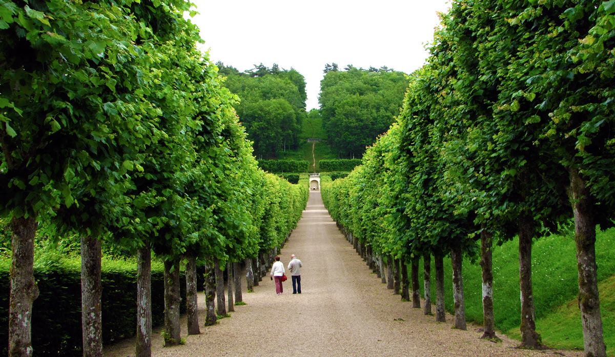 Exact în fața castelului avem grădina iubirii, formată din patru pătrate reprezentând: iubirea tandră, cu arbuști tăiați în formă de inimi, iubirea pasională, tot cu inimi, dar de data asta frânte, iubirea tragică și iubirea schimbătoare. N-am reușit să le surprind prea bine, un motiv în plus să mă întorc la castel. A doua parte a grădinii ornamentale, dincolo de canal, este reprezentată de grădina muzicii, cu plante tăiate în formă de lire, sau note muzicale.
