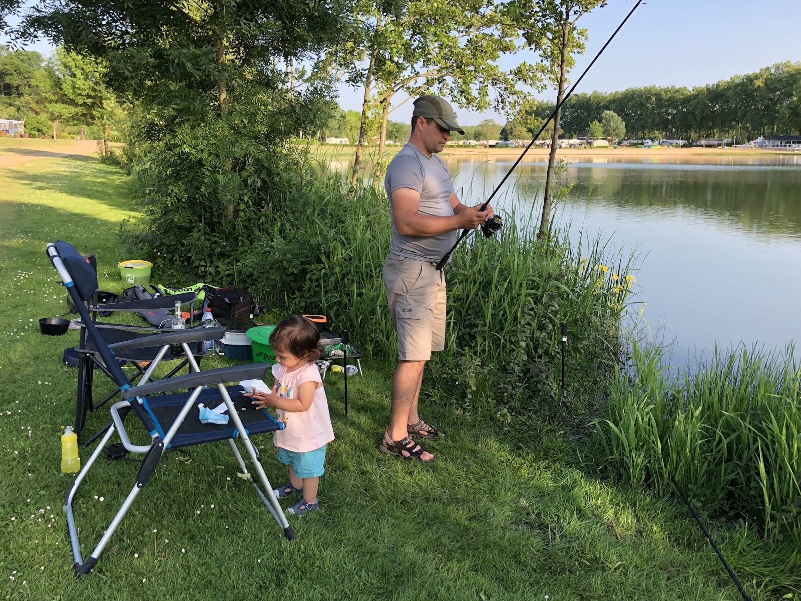Întorși în camping am profitat de ultimele raze de soare pentru a întinde undița, a ne juca, a profita de natură și de locul frumos în care ne aflam. Amurgul este momentul meu preferat când mergem cu cortul. Când forfota zilei se potolește, iar înserarea se lasă peste natură, făcand-o feerică și misterioasă, pare că toată lumea încetinește, că timpul nu mai există, iar grijile zilnice se estompează, până se topesc de tot. Nu a durat mult până ca Erika să cadă ruptă de oboseală. După o zi de zburdat în natură cred și eu! Așa că seara ne-am petrecut-o liniștiți în doi, la un pahar de vin. Noaptea nu a fost friguroasă nici problematică, Erika a dormit buștean în sacul ei, iar Azorel ne-a incălzit pe toți trei. Dimineața la cort este un alt moment magic, când mă trezesc primele raze de soare ori cântecul păsărilor. Când dau cu nasul de aerul rece și curat, iar primul lucru la care mă gândesc este să aprind repede arzătorul și să pun de-o cafea. Și nu există cafea mai bună decât cea făcută la usa cortului, cine a încercat știe despre ce vorbesc! A doua zi ne-am petrecut-o nefăcand nimic, motăind la soare, sau aruncând undită, iar la prânz Andrei a pregătit o saramură de pește excelentă, de ne-am lins pe degete toți trei. După masă am stans catrafusele și am luat drumul casei, încheind un weekend excelent la malul lacului Varennes, unde abia așteptăm să ne întoarcem cât mai curând.