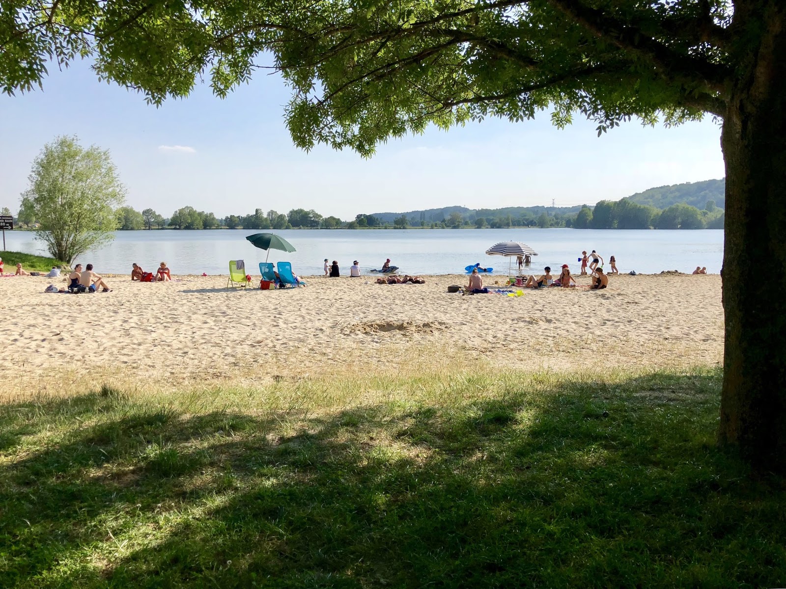 Așa că am plecat de acasă cu portbagajul burdușit de echipament de camping și pescuit. La Marçon am ajuns chiar la prânz, la fix pentru a întinde repede masa și a încinge grătarul. Pui, vită și costițe de miel, pește mai pe seară dacă ar fi binevoit să muște la undiță. Glumesc, desigur, aveam și peștele pregătit, doar că saramura am lăsat-o pentru a doua zi. Am adăugat doar niște cartofi copți cu un sos de smântână cu usturoi, plus o roată de brânză Camembert în jar, ca piesă de rezistență, mai ales că aveam invitați la masă, prietenii noștri care au decis să ne viziteze la camping. După masă fiecare și-a văzut de ale lui. Băietii au aruncat undița, în timp ce noi, fetele, am mers la plajă. Erau o mulțime de copii în apă ceea ce m-a mirat inițial, nu mă gândeam ca apa să fie caldă. Dar era, cel puțin la mal, numai bună de răcorit picioarele, mai ales că temperatura urcase un pic peste limita de confort. Inițial am prevăzut ca Erika să se joace un pic, să facem castele de nisip, să bage picioarele, dar a sfârșit prin a se bălăci cu totul, cine s-o mai poată scoate din apă? Nu se mai dădea dusă de pe plajă, așa că s-a lăsat cu ceva plânsete la plecare. E clar, avem un copil iubitor de apă, dar asta știam deja, am urmărit-o și acasă cu câtă plăcere se joacă în cadă, la puț cu furtunul, ori prin băltoace când sunt. Dar cred că toți copiii adoră apa, dacă sunt lăsati. Iar ca să uităm un pic de bălăceală, la sfârșitul după-amiezii am făcut o mică plimbare în afara campingului, pentru o inghetată binemeritată și un popas la locul de joacă amenajat pentru copii.