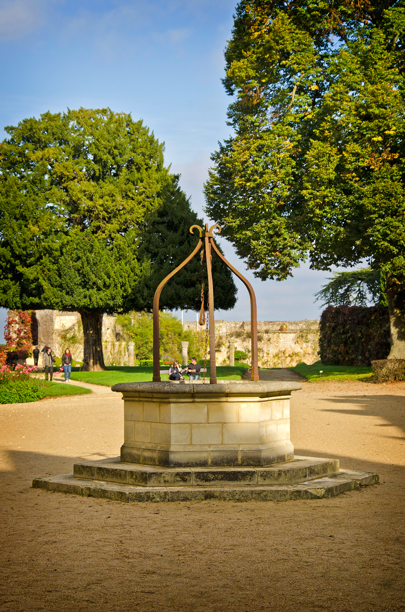 Astfel, după ce am plătit biletul la intrare, domnișoara de acolo, care de altfel avea să e fie ghid, ne-a spus că ne așteptată la 14.30 în curtea interioară, până atunci putem să explorăm grădinile și terasele ceea ce am și făcut. La ora stabilită ne-a strâns pe toți descuindu-ne pe rând încăpere cu încăpere, începând cu bucătăria medievală, pivnițele și saloanele frumos mobilate și decorate din Château-Neuf, iar poveștile ei, frumos intonate și adesea presărate cu haz și picanterii, ne-au purtat preț de o oră pe drumurile întortochiate ale istoriei castelului. Nici nu știu când a trecut ora cu pricina, dar cred că nici pe bunica când îmi citea povești în copilarie n-am ascultat-o cu atâta atenție, prinsă de firul istorisirii și desprinsă complet de realitate. Probabil că unii ghizi chiar au talent pentru meseria lor, în timp ce alții nu fac decât să recite poezia, dar cert este că dacă până acum doar știam că vizitele cu ghid sunt mult mai interesante, la Montreuil Bellay mi s-a confirmat că la castele fără ghid e ca și cum ai da banii pe intrare de pomană. Îmi promit solemn că la fiecare castel la care voi merge de acum înainte voi lua turul ghidat!