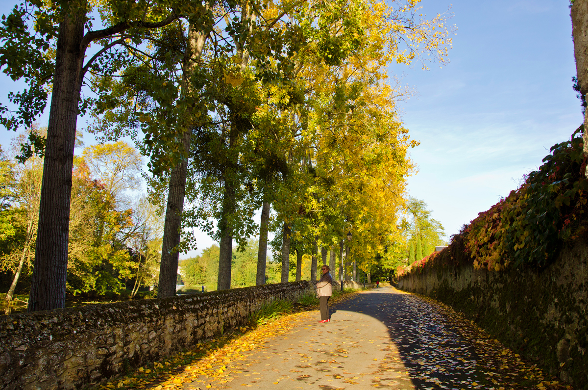 După ce am ieșit din castel am făcut o plimbare pe zidurile medievale, o plimbare lipsită de incidente având în vedere că eram încălțată cu tocuri, după care am purces la exterior, făcând o oprire și la biserica de lângă, care inițial a aparținut familiei, dar ulterior a fost făcută cadou orașului. Înconjurat de ziduri de piatră și scobit de porți de intrare, patru dintre ele încă în picioare, Montreuil Bellay este unul dintre cele 32 de orașe fortificate din Anjou. Am coborât străduțele până la podul peste Thouet și de acolo am luat-o la stânga, pe o poteca ce lungește malul râului, bordată cu pomi pe o parte și cu zidul vechi de piatră al castelului pe alta. N-a fost mult de mers, dar a fost suficient să-mi amintească cât de frumos este acest anotimp.