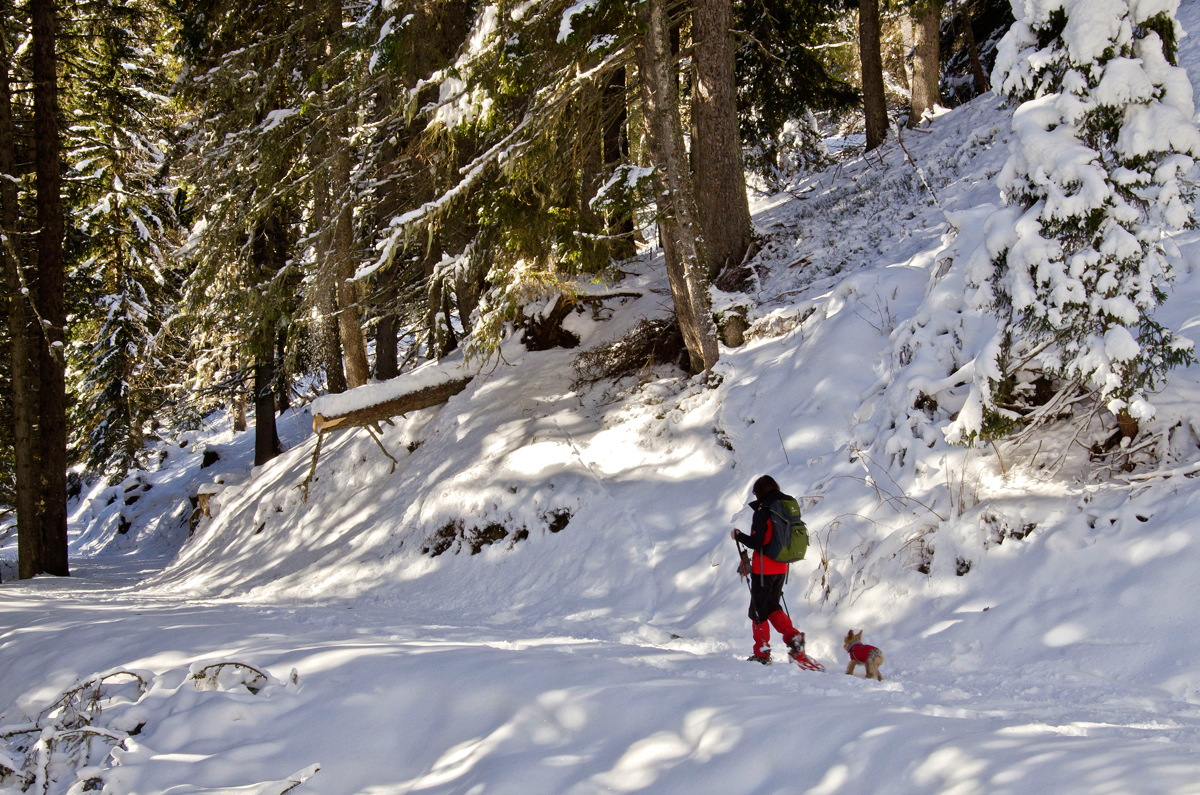 Dar până la noaptea dintre ani a fost ziua de 31 decembrie, pe care mi-am petrecut-o cum altfel decât pe munte. Planul era pregătit, Mont Rond, doar nu era să las revelionul să mi-l dea peste cap. Când om ajunge în camera, om ajunge, mi-am zis, iar dacă n-avem timp să ne pregătim nu-i bai, ce, în polar și bocanci nu pot ciocni o cupă de șampanie?! Traseul ce înconjoară „Muntele Rotund”, este recomandat pentru rachete de zăpadă, dar se poate parcurge și fără; pornește din localitatea Nôtre Dame de Bellecombe, prima parte se parcurge fie cu telescaunul, fie lungind pârtia de schi, iar punctul de altitudine maximă oferă o panoramă interesantă, la 360°, spre masivele Mont Blanc, Aravis și Beaufortain. Pentru că nu mă simt în largul meu pe partie, am ales varianta telescaunului. Mi-era un pic teamă că poate nu ne dau voie cu Azorel, chiar și băgat în rucsac, dar n-a fost problemă, Azorel se poate lăuda astăzi c-a trăit-o și pe asta.