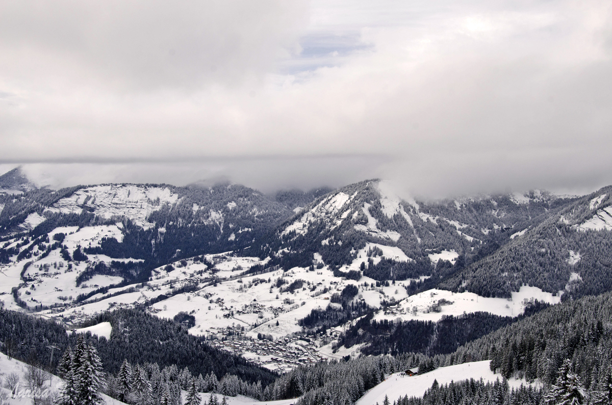 Se făcea că era 2 ianuarie și după mai multe zile însorite în Alpi, norocul avea să se cam termine, așa că în ultimele două am avut parte numai de nori și vizibilitate redusă, deci ciuciu panorame splendide. Și tocmai într-una din zilele astea eu m-am găsit să mergem la Rochebrune, de unde se putea admira una dintre cele mai deosebite priveliști asupra Mont Blancului. Desigur, pentru francezi fiecare loc e cel mai frumos, cel mai mare, cel mai cel, m-am obișnuit cu sintagma asta, așa că prefer să mă conving singură. Dar Rochebrune a rămas până astăzi o necunoscută, pentru că oricât m-am rugat eu, vizibilitatea tot 0 a rămas până la plecare.