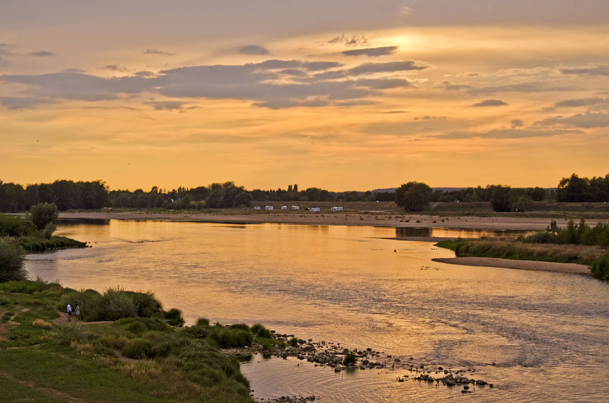 Apus de soare peste Loara (foarte secată vara asta)