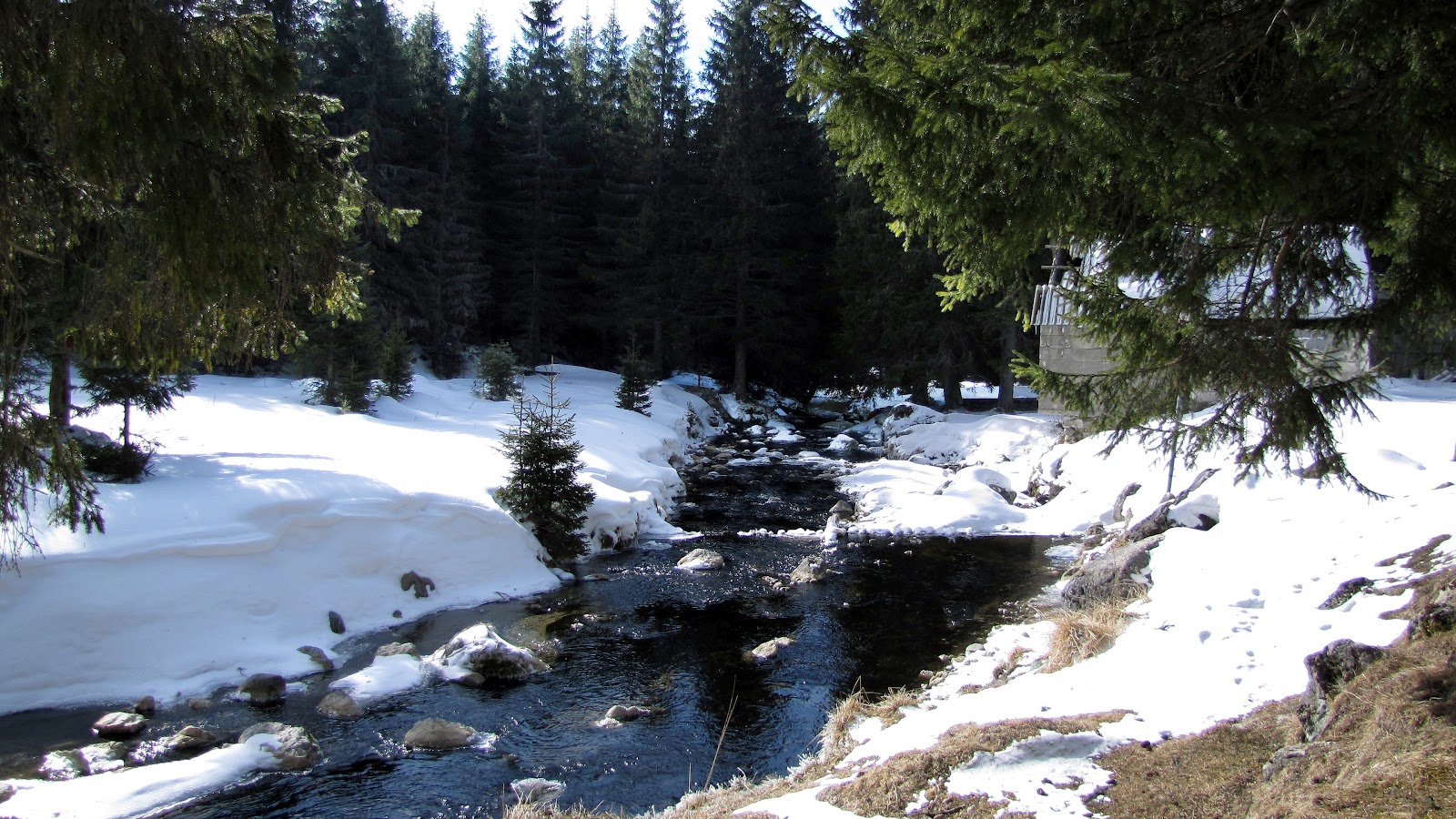 Totul pare de vis în jurul meu. O iarnă ca în povești. Sursurul apei, adierea vântului, magia zăpezii. Fumul ce iese pe coșuri, brazii falnici și impunătorul munte. Ne continuăm drumul, ținându-ne de mână, mergând paralel cu apa Ialomiței, purtând în suflet o fericire profundă, o mulțumire sufletească intensă și deplină. Trecem de poiana Horoabei și ieșim în larga poiană de la Cabana Padină, unde facem un popas preț de o ciocolată caldă. Cât de frumos! Cât de mult iubesc muntele și natura, la fel și poveștile pe care aceste personaje le spun. Cât de mult iubesc să trăiesc liber în mijlocul lor, să visez, să îmi închipui, să plăsmuiesc cu minte până departe.