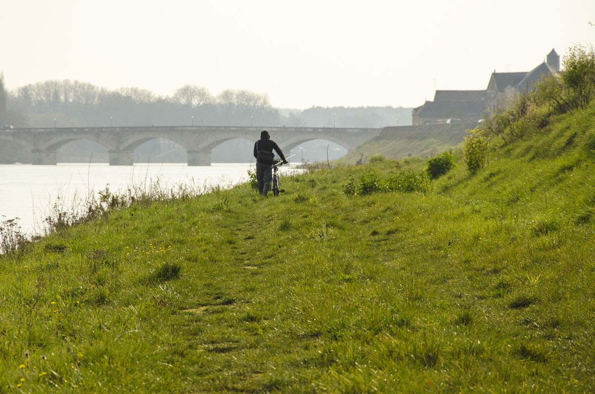 Așa că duminică și-a luat fiecare ce-l interesează, eu bicicleta el undința, și am luat-o ușurel pe malul fluviului, cu tot cu Azorel, la vale. Unul dintre avantajele vieții la Amboise, și în general în localitățile mici, este exact această posibilitate de a evada în natură de cum ai ieșit pe poartă. N-am nevoie de parcuri, de luat mașina, nici transportul în comun. Sunt suficienți câțiva pași și mă pot bucura de mișcare, de aer curat și verdeață. Apoi, ce norocoși suntem că avem Loara la doi pași, îmi zic uneori! Cu împrejurimile ei naturale pline de vegetație, este o oază numai bună pentru ieșiri în natură, plimbări, biciclit, sau pescuit pentru amatori. M-am obișnuit s-o văd în fiecare zi și face parte atât de integrantă din viața mea, astfel încât dacă m-aș muta mai departe cu siguranță i-aș duce lipsa. Coincidență sau destin, mă bucur că locuiesc cu adevărat la malul ei, chiar dacă iarna, când se umflă înfiorător de tare, mă cam bagă în sperieți. Sper totuși că dacă e să fi făcut și francezii ceva bun, barajele să fie acelea.