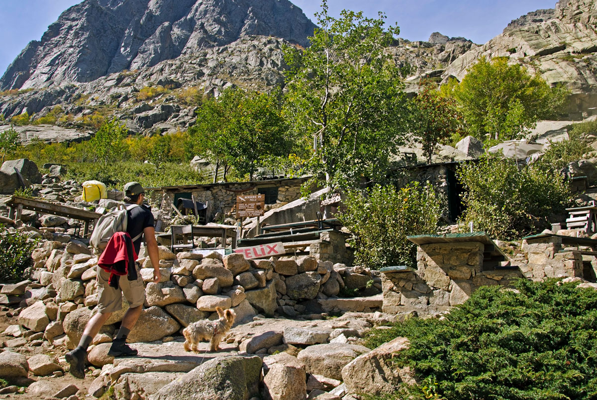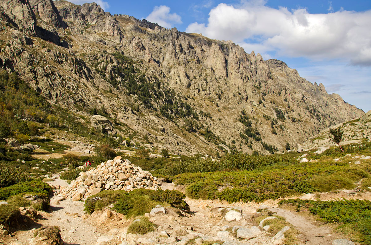Am trecut cu bine de bucata asta de drum, am parcat mașina în parcarea special amenajată, cu plată și bine dirijată de câțiva tineri, ne-am luat catrafusele și am început drumeția pe munte cu… un popas la stână. Eram curioși să vedem despre ce este vorba, așa că am coborât un pic până acolo și bine am făcut. Bergeries de Grotelle se înfățișează sub forma unui ansamblu de căsuțe vechi, tradiționale, din piatră cu lemn, care au reprezentat cândva un popas obligatoriu pentru turmele de oi ce urcau către lacul Melo. Inconjurate de un peisaj măreț, întruchipat de culmile muntoase Capu Chiostru și masivul Rotondo, stâna pare ruptă din alte timpuri.