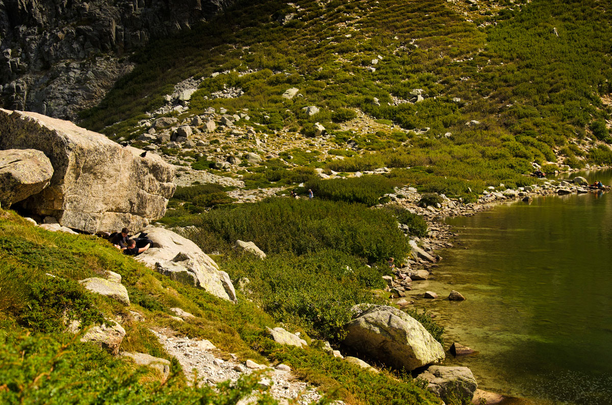Aproape că și uitasem de lacuri, nici nu ne mai venea să luăm rucsacii în spate. Am fi rămas toată ziua să moțăim în acel decor de basm, alături de o bere Pietra din făină de castane, pe acorduri de muzică corsicană, la adăpostul stâncilor mărețe. Dar nu numai pentru asta venisem aici, eram porniți să gustăm mai mult din experiența Restonica, așa că am purces la drum până nu ne moleșeam de tot.