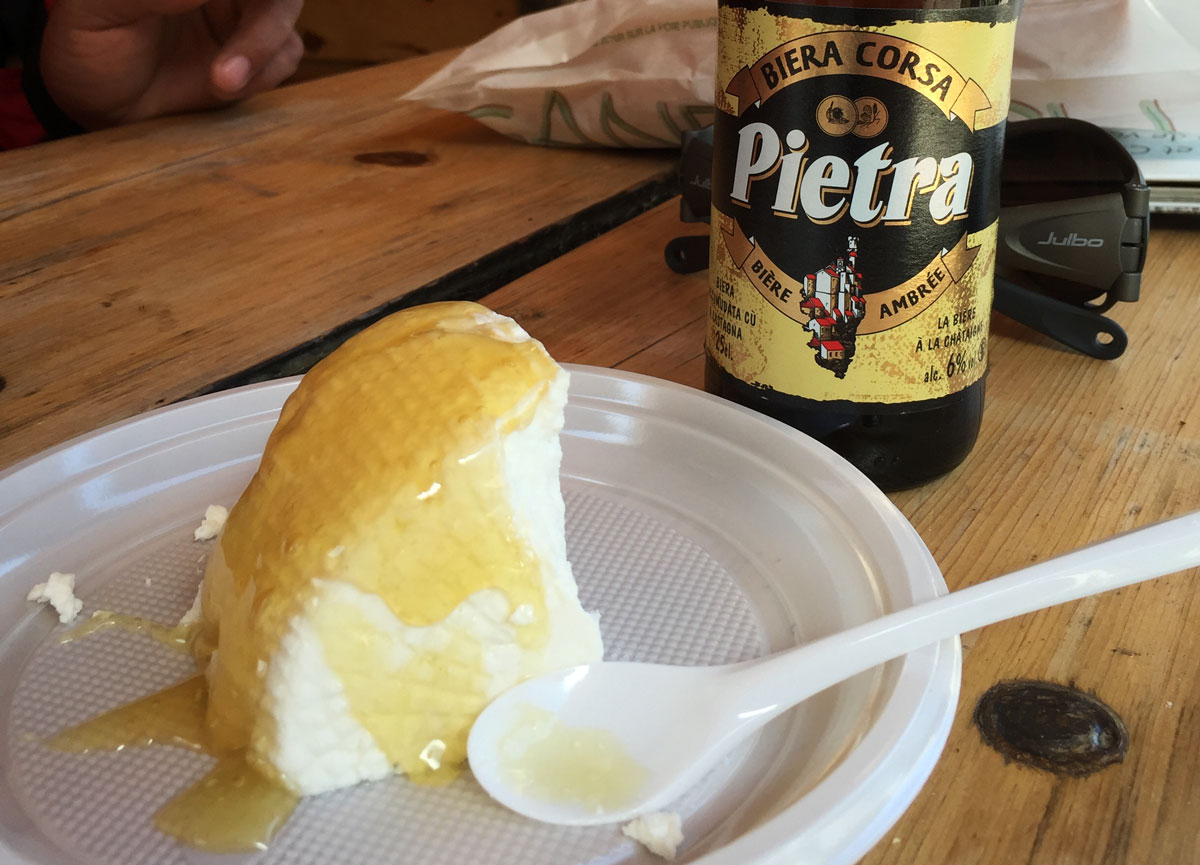 Familia de ciobani instalată de 30 de ani la Grotelle a hotărât să împărtășească și altora, în special drumeților care urcă la lacuri, câte puțin din experiența lor, din acel savoir-faire ancestral, despre creșterea și mulsul oilor, ritualul fabricării artizanale a brânzei și despre brocciu, promovându-și munca și valorificând patrimoniul insular. Micuța afacere de familie propune celor care se opresc pentru un popas gustări și sandvișuri făcute în casă, bere Pietra și răcoritoare, degustări de produse locale (brânzeturi, produse din carne), alături de conversații plăcute. Exact așa i-am găsit și noi când am pășit timizi la poarta stânei: ospitalieri, joviali, dispuși la discuții și bucuroși să ne deschidă ușa… magaziei cu brânză. Din păcate la ora la care am ajuns pierdusem ritualul fabricației, dar asta nu ne-a împiedicat să gustăm brocciu, așa cum se mănâncă, se pare, acolo, cu miere deasupra.