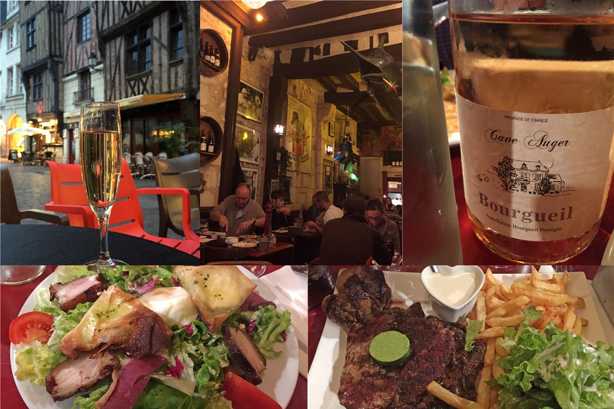 2. Le marché gourmand (27 Rue du Grand Marché, 37000 Tours) este un restaurant ceva mai gastronomic și mai scump, dar ideal dacă vreți să luați o cină specială. Situat pe străduțele centrului istoric din Tours, la parterul unei căsuțe tradiționale cu bârne de lemn, localul vă va întâmpina cu un decor modern, dar în același timp și cu o bucătărie excelentă, în mare parte tradițională regiunii Touraine. Aveți opțiunea alegerii preparatelor à la carte sau incluse într-un meniu, acompaniate firește de o selecție de vinuri regionale. Recomand pavé du boucher, friptura delicioasă acompaniată de cartofi prăjiți și sos roquefort, alături de un vin roșu sec regional (Saint Nicolas de Bourgueil, Saumur Champigny, etc).