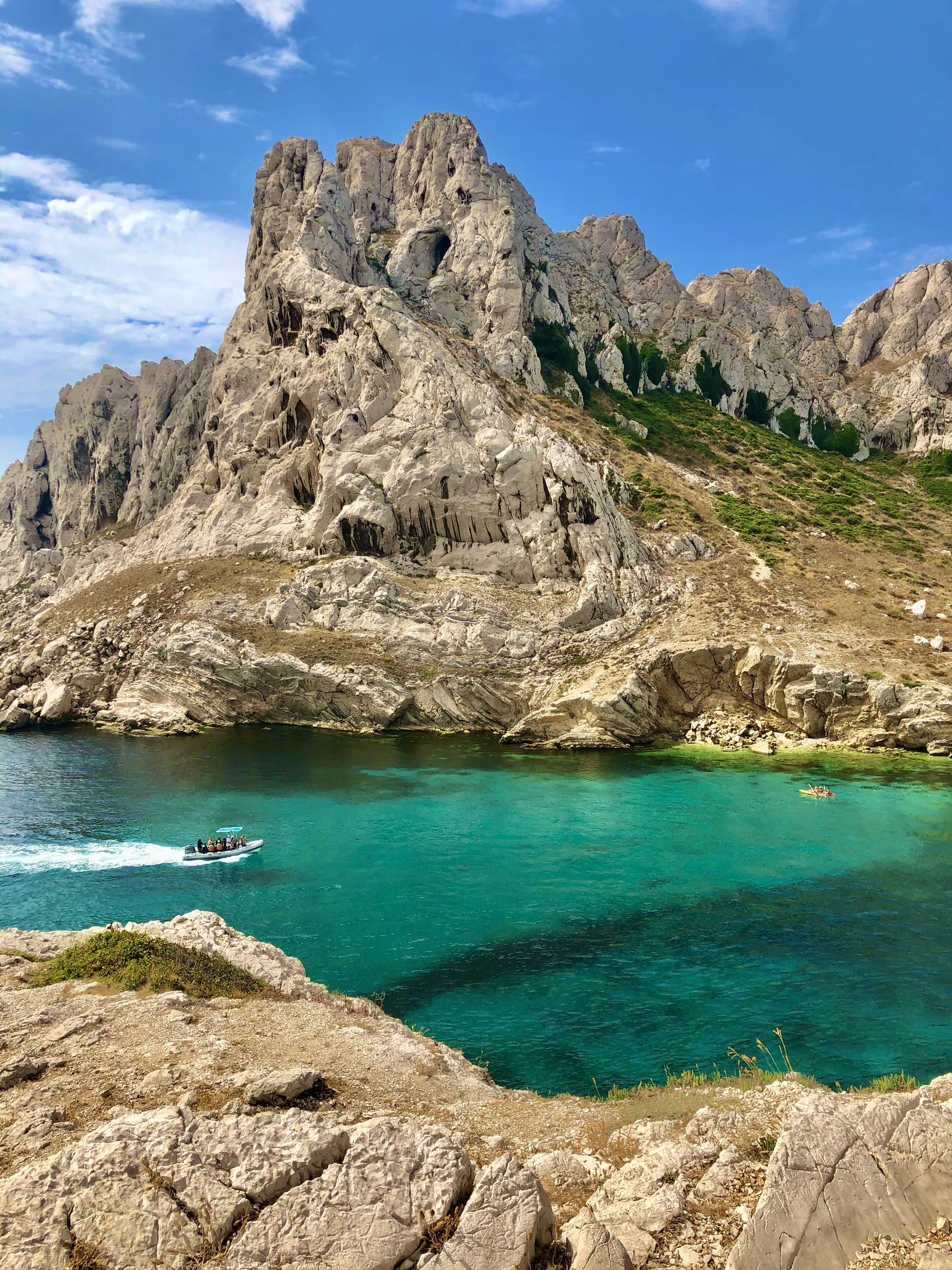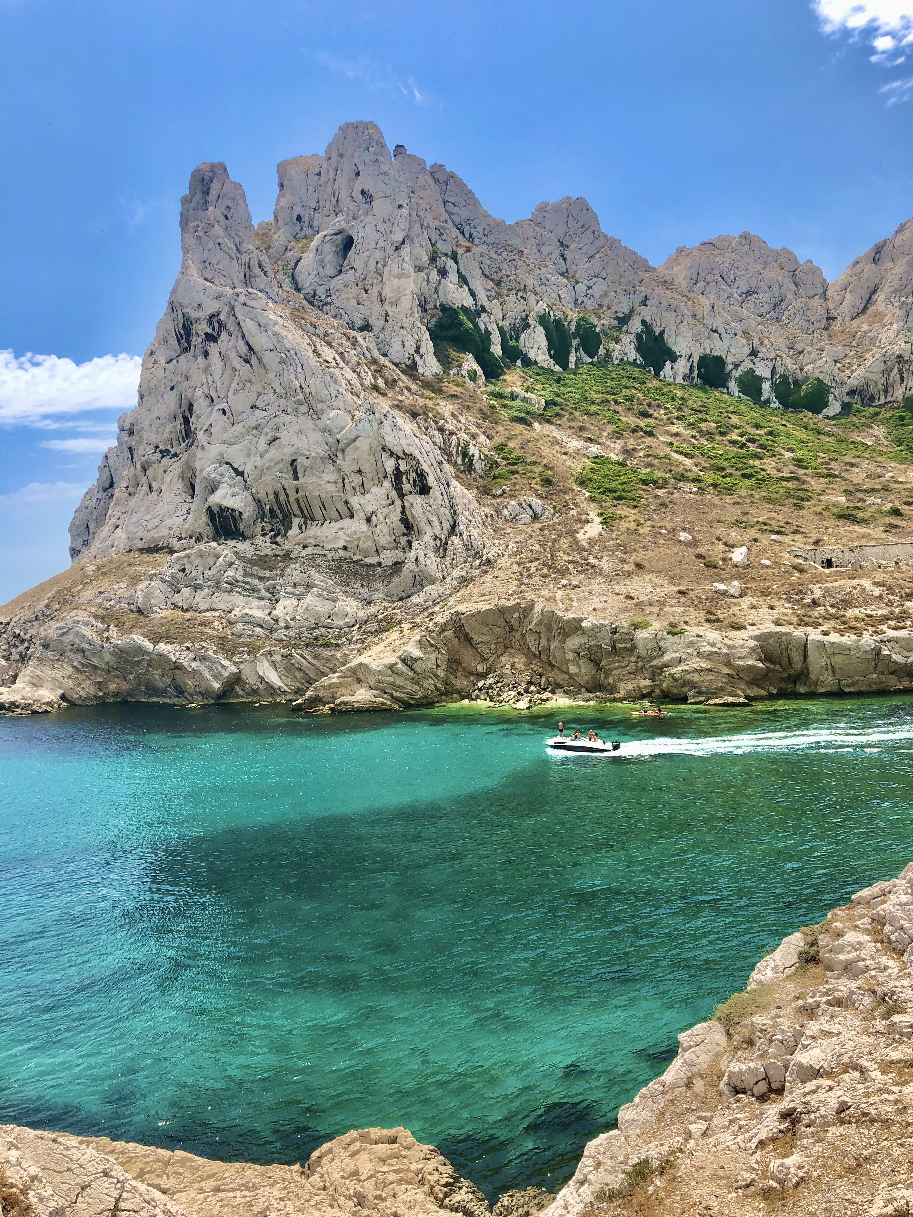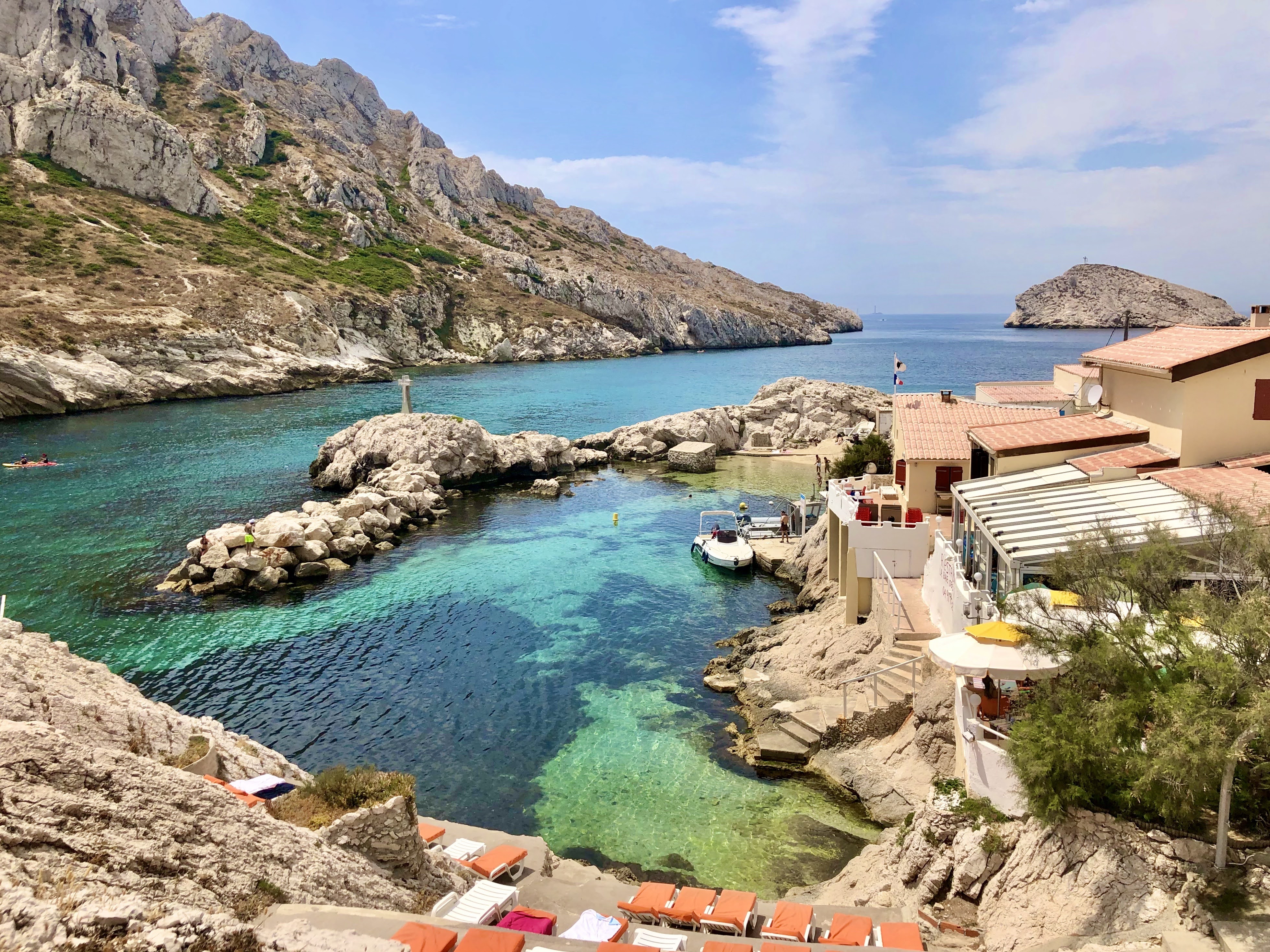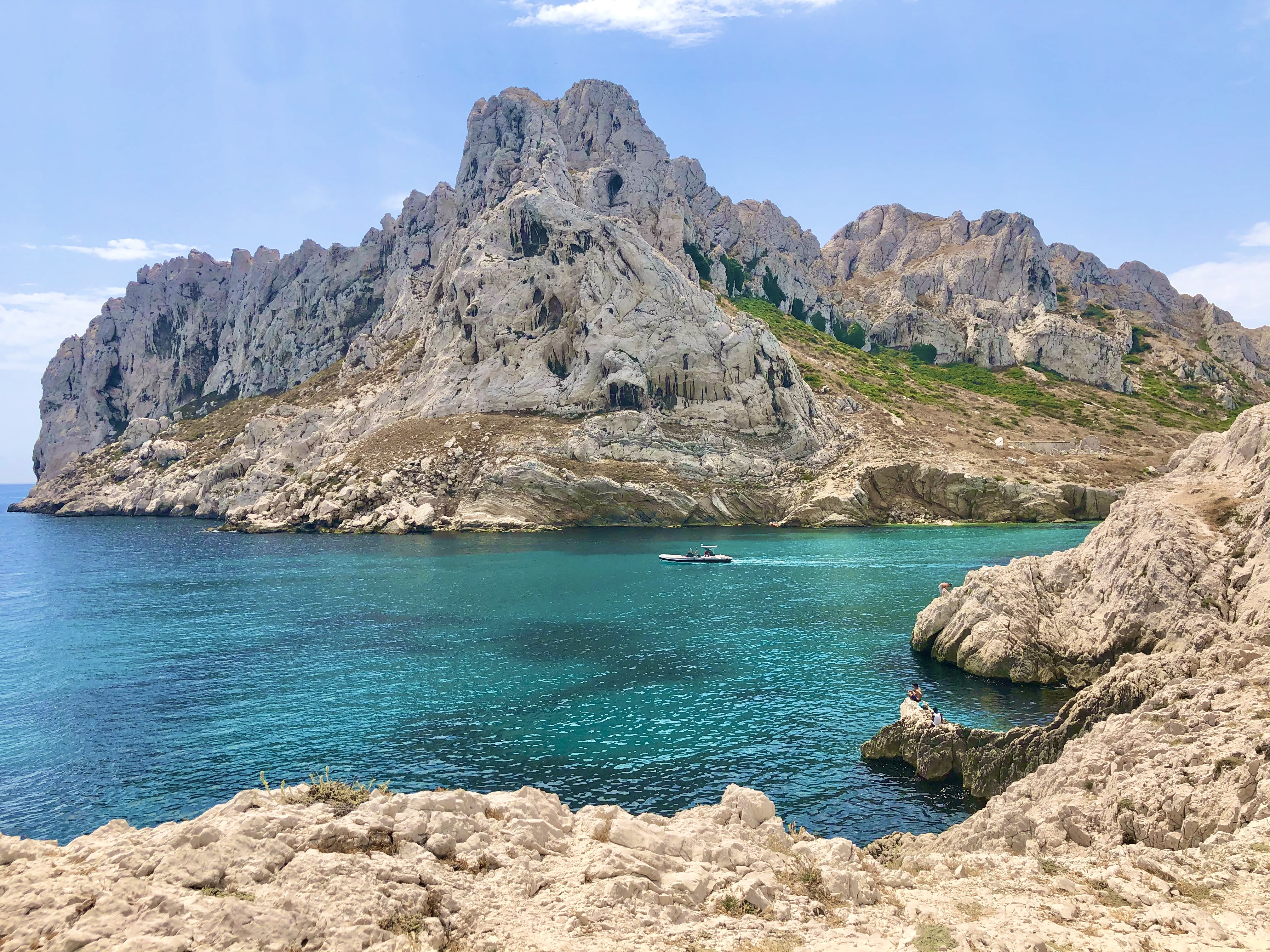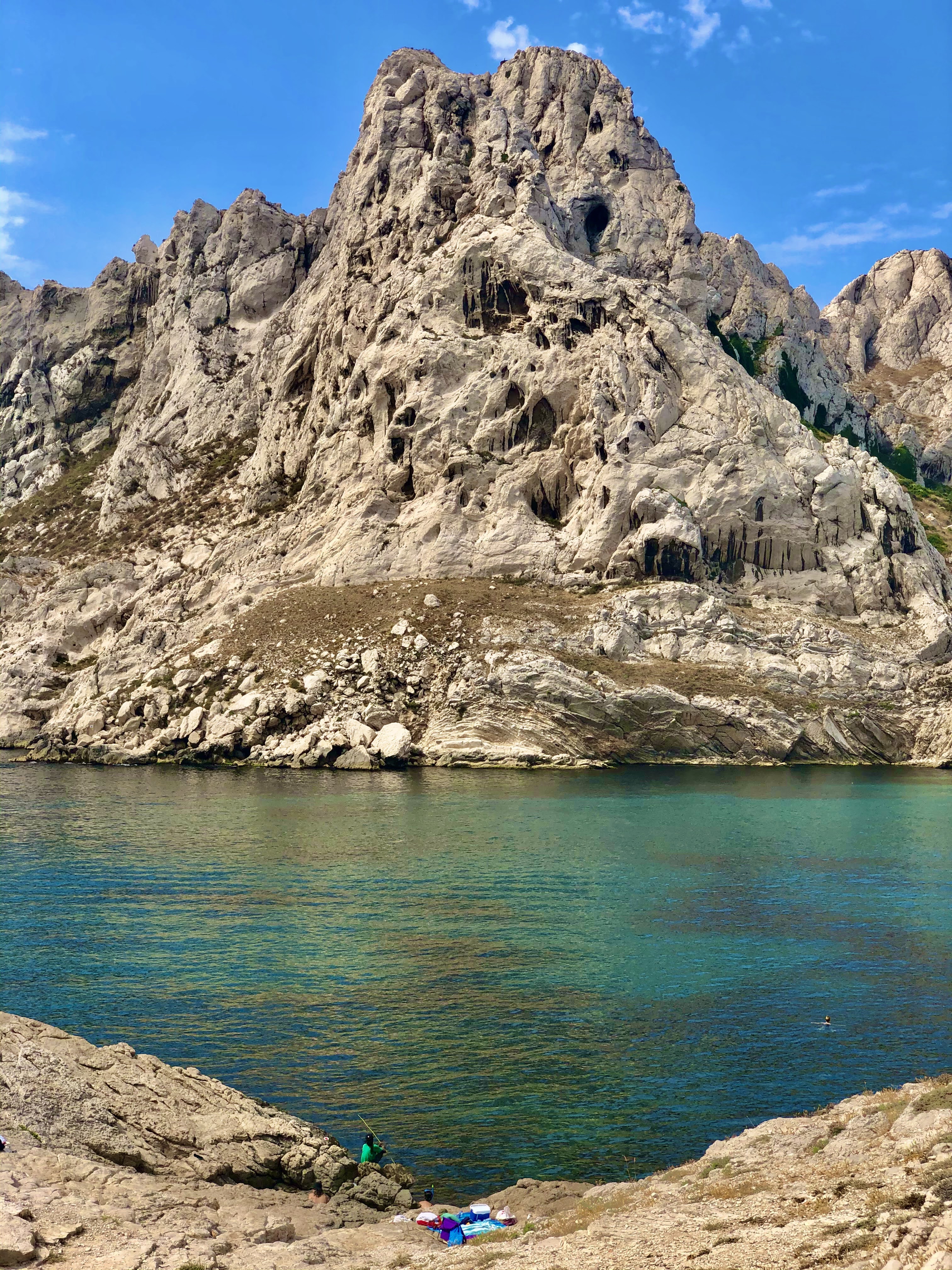 Am mai poovestit pe blog despre acest Masif des Calanques… Este vorba despre niște faleze vertiginoase, de un alb strălucitor, tăiate de crestături adânci și înguste și care, pe o lungime de aproximativ 20 km între Marsilia și Cassis, se scufundă în apele de un albastru profund ale Mediteranei. Ar putea fi ușor comparate cu fiordurile, doar că se scaldă în ape mai calde, sau cu niste golfuri mai strâmte. Calanque este de fapt o formațiune geologică specific mediteraneană, o vale litorală foarte abruptă, săpată în rocă de calcar de un curs de apă. Văile s-au format prin eroziune, iar ulterior partea lor inferioară și cavitățile subterane au fost inundate de mare, care a și modelat în anii ce-au urmat, împreună cu vântul, relieful pe care-l putem vedea astăzi.