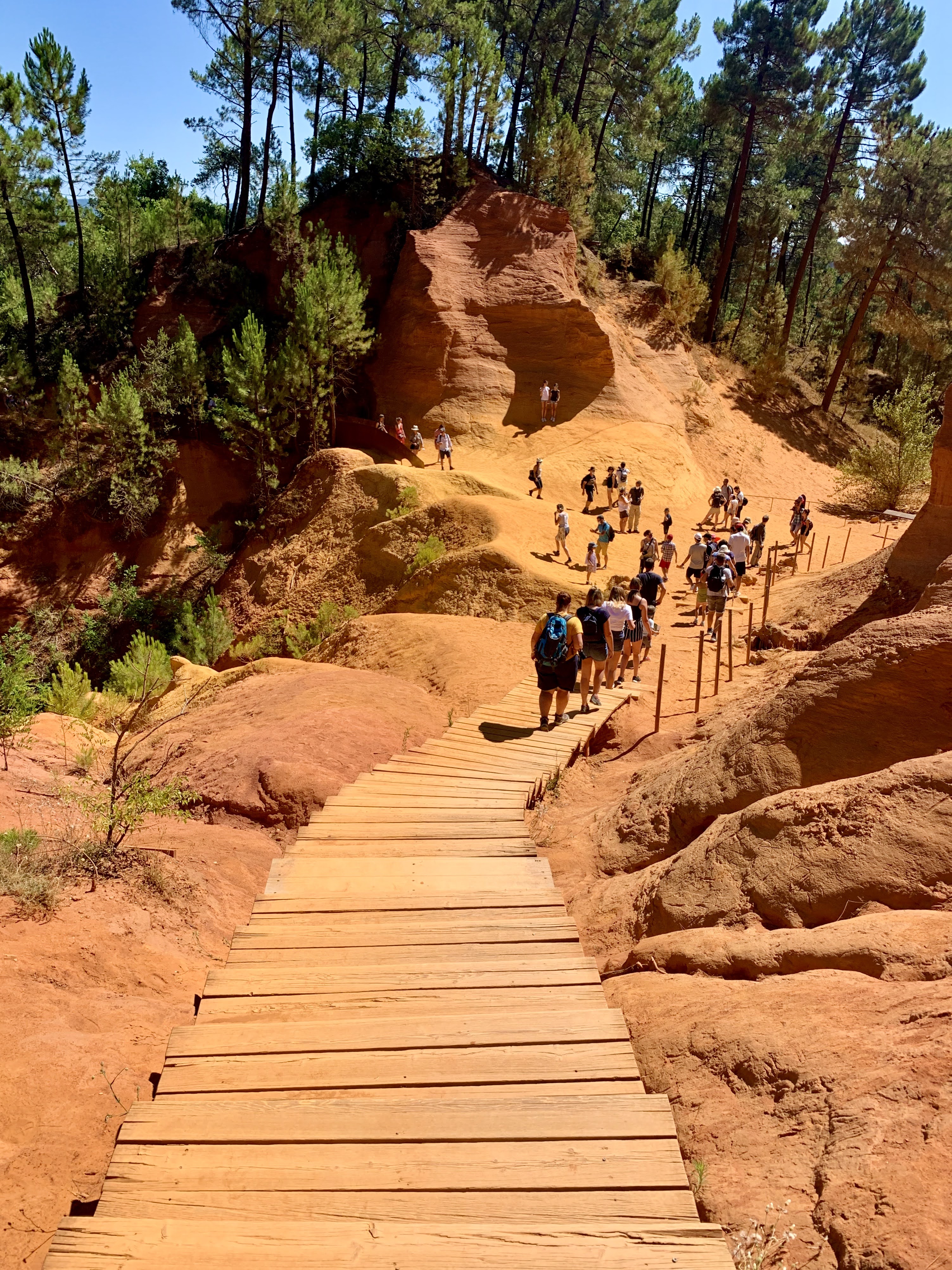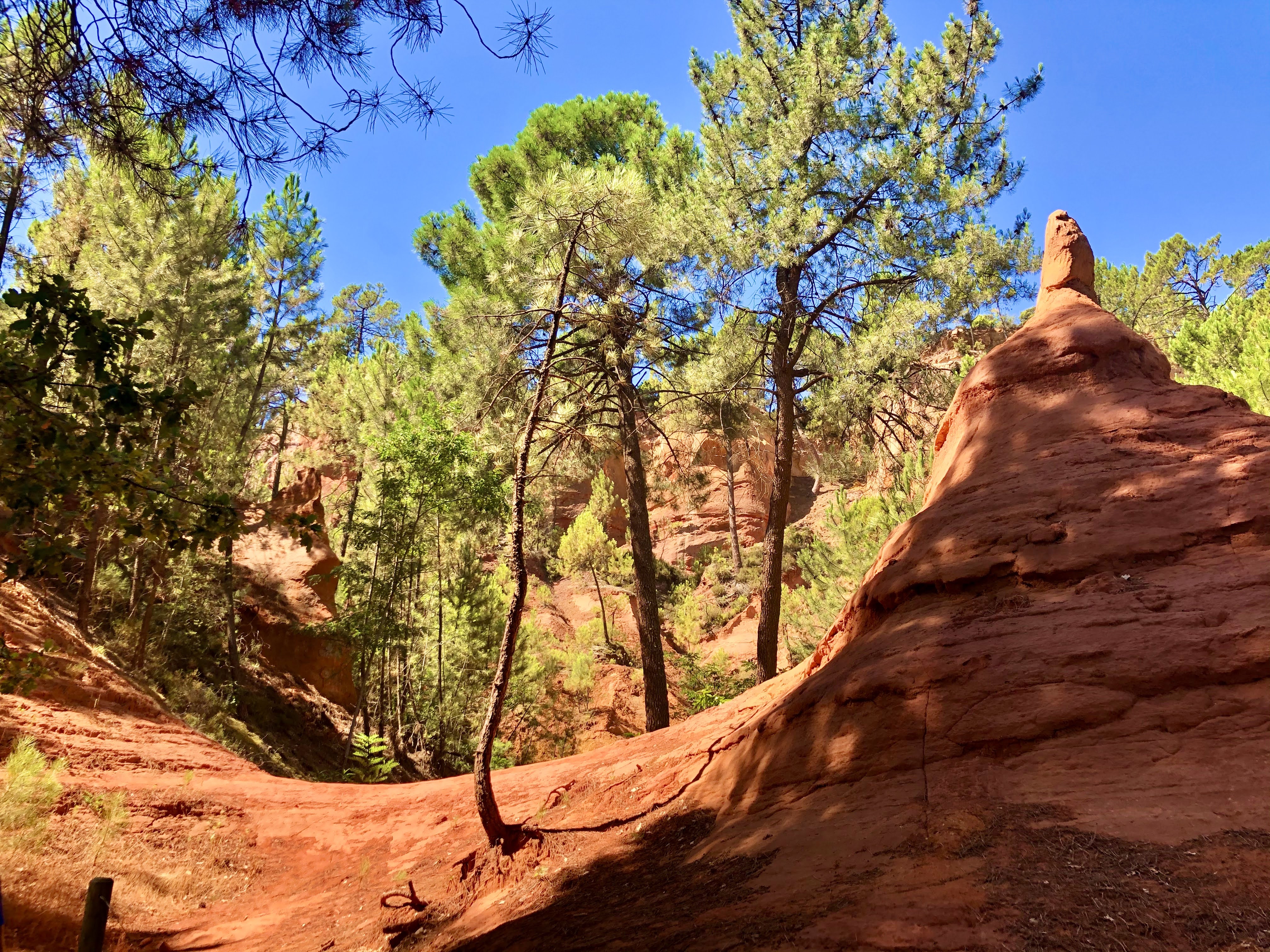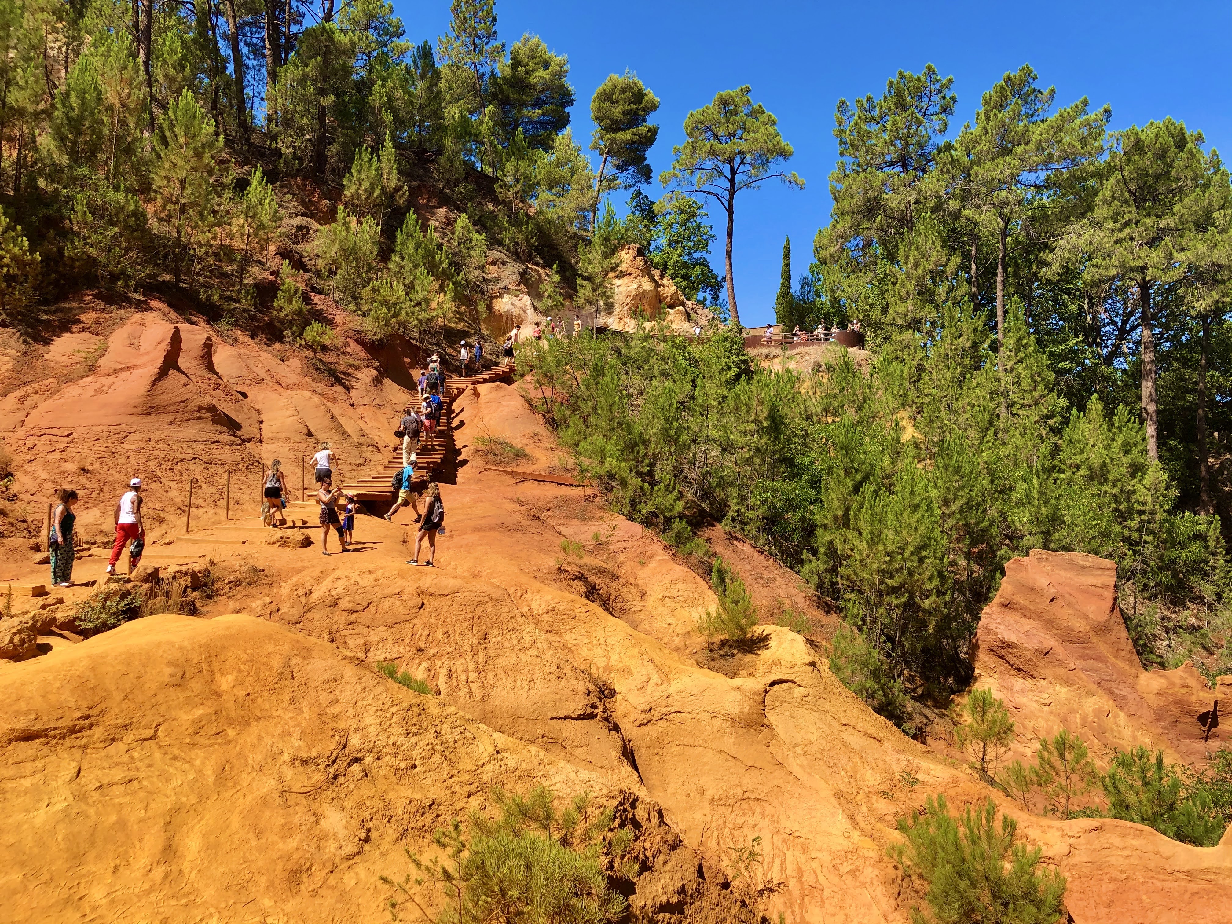 În vacanța din anul 2020, celebrul an cu coronavirusul, am mers să-mi dau restanța la disciplina Provence în pitorescul sat Roussillon și pe al sau traseu Santier des Ocres, într-o adevărată explozie de culori și lumini. N-am mai ajuns în 2008, deși era plănuit, din mai multe motive : copil mic, organizare proastă, căldură excesivă. N-a fost bai, am ajuns anul acesta și am profitat mai bine, ba chia ram făcut-o în formație de patru. Cinci, firește, dacă îl punem la socoteală și pe Azorel. Vedeți voi, paradoxal, organizarea excursiilor este invers proporțională cu numărul copiilor din dotare.