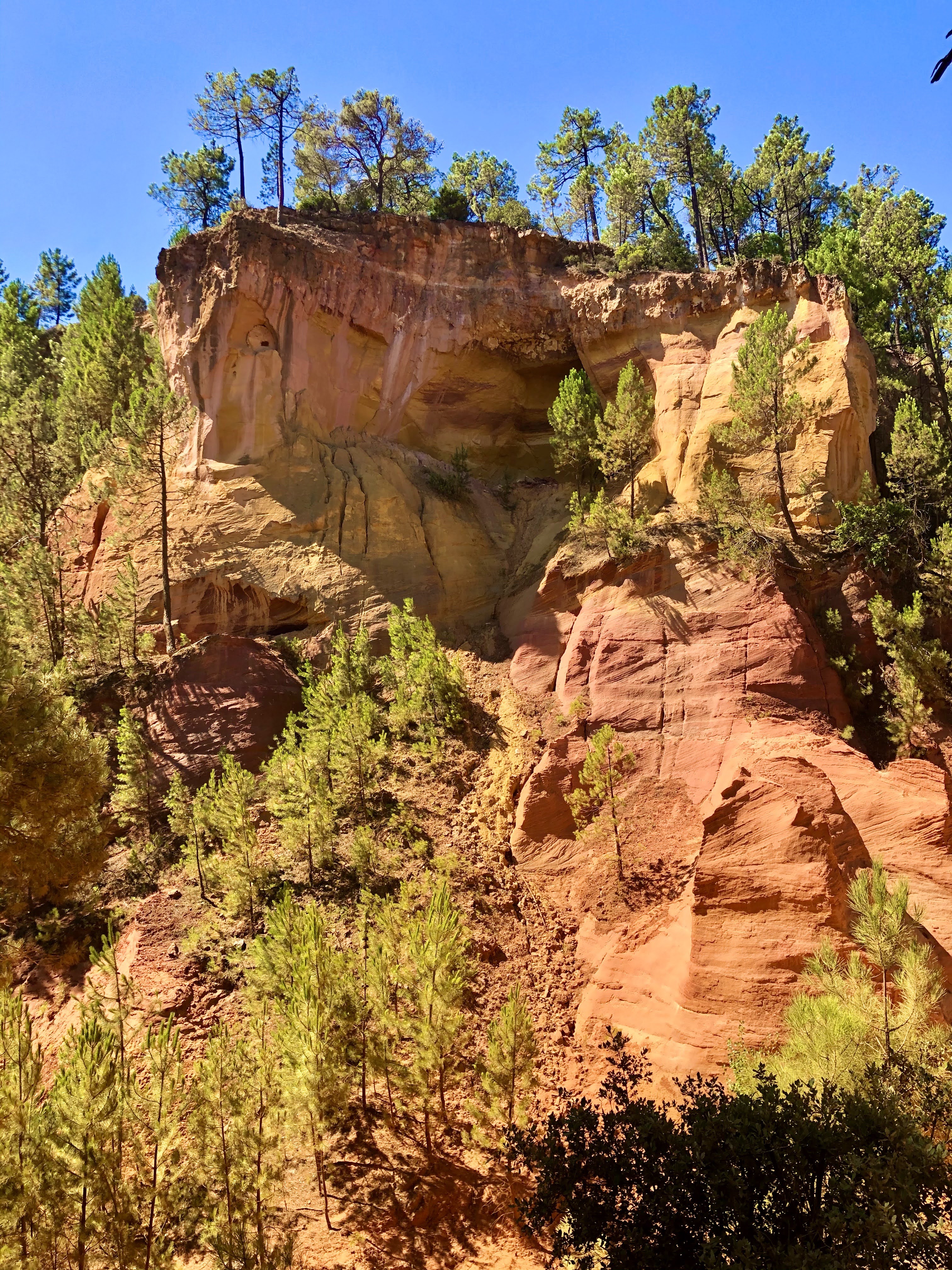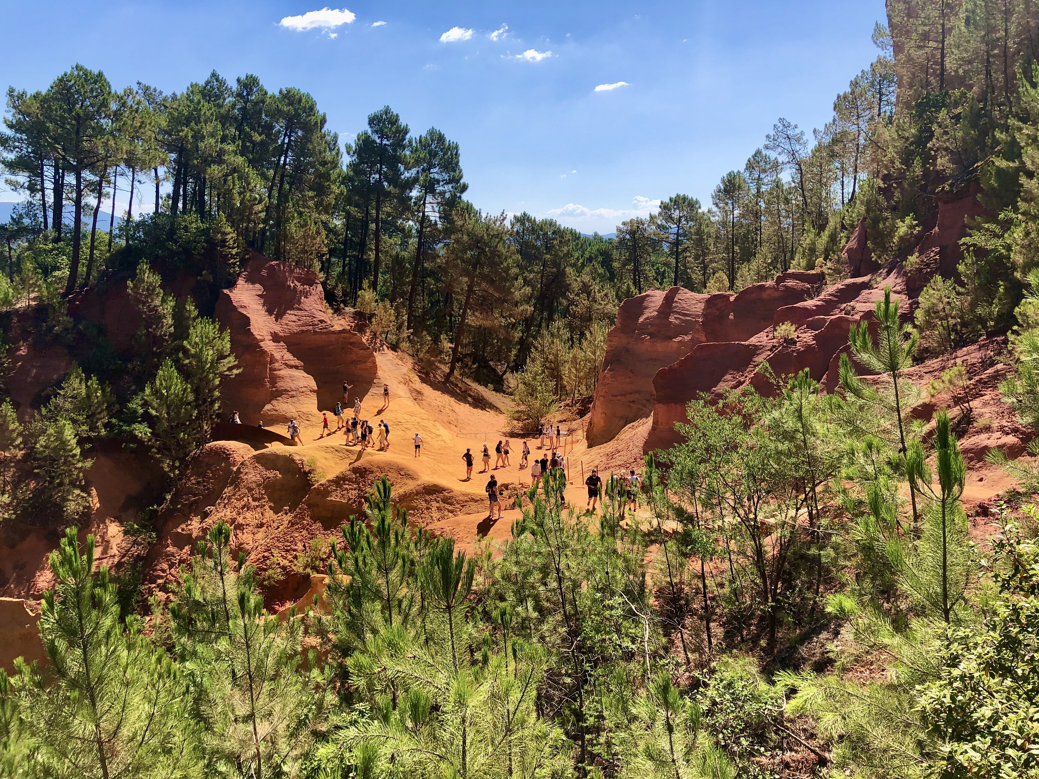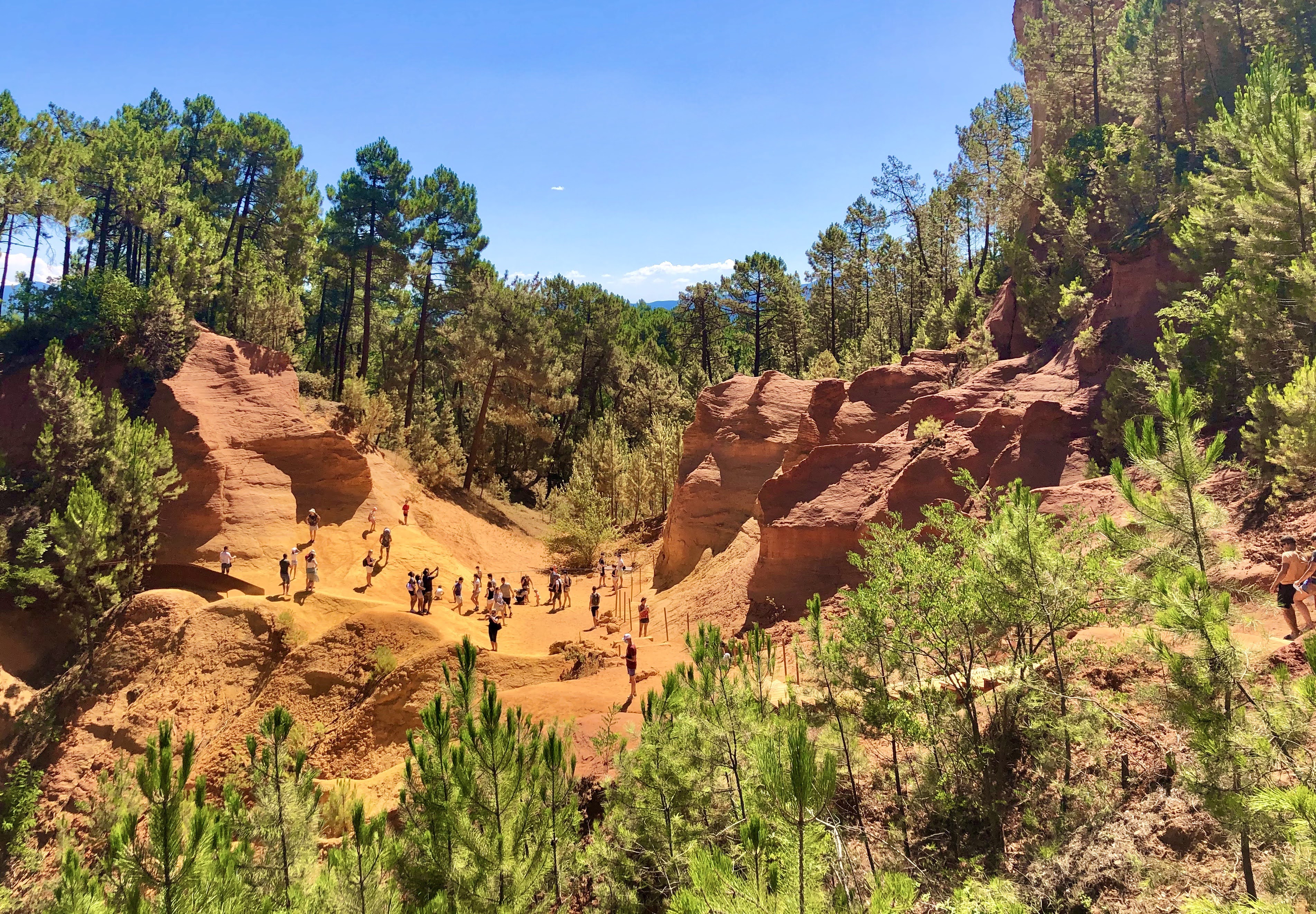 În vacanța din anul 2020, celebrul an cu coronavirusul, am mers să-mi dau restanța la disciplina Provence în pitorescul sat Roussillon și pe al sau traseu Santier des Ocres, într-o adevărată explozie de culori și lumini. N-am mai ajuns în 2008, deși era plănuit, din mai multe motive : copil mic, organizare proastă, căldură excesivă. N-a fost bai, am ajuns anul acesta și am profitat mai bine, ba chia ram făcut-o în formație de patru. Cinci, firește, dacă îl punem la socoteală și pe Azorel. Vedeți voi, paradoxal, organizarea excursiilor este invers proporțională cu numărul copiilor din dotare.