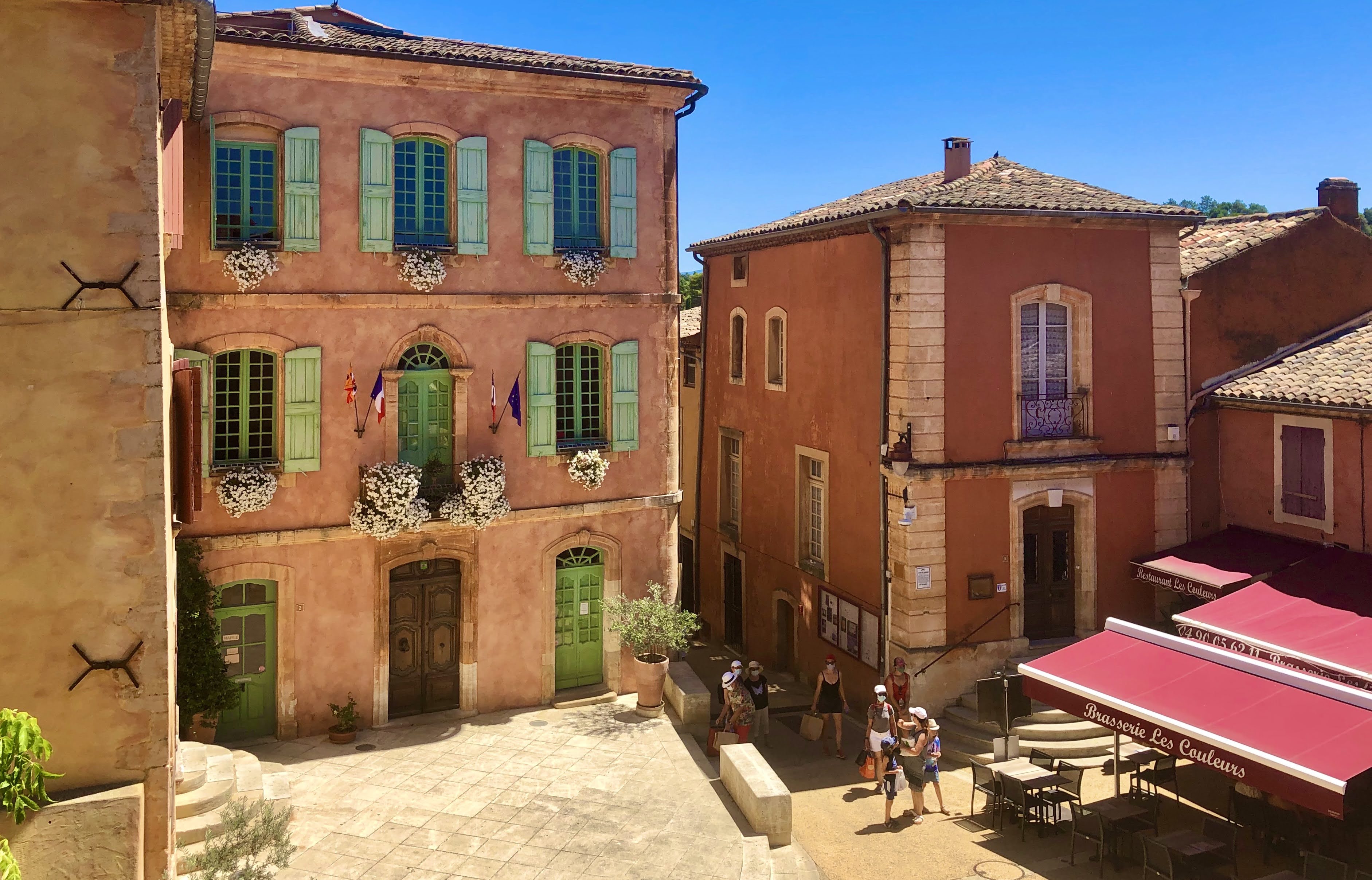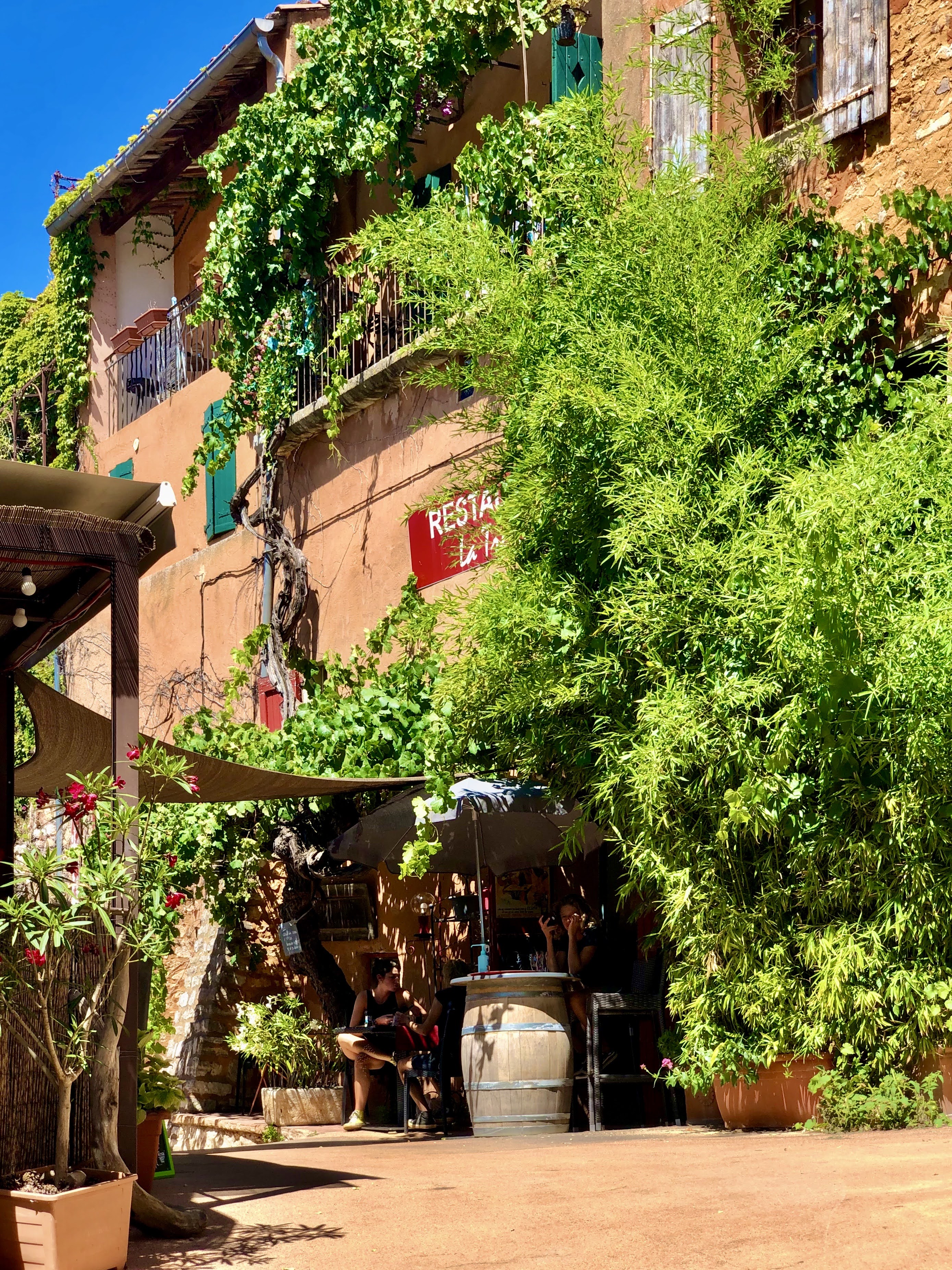 Vizita noastră în satul Roussillon s-a terminat cu o înghețată la buticul de la ieșirea din sat, așezat strategic pentru a oferi o imagine inedită asupra caselor roșiatice, imagine menită să ne rămână în minte și să fie adăugată la sacoșa cu amintiri. Dar vizită la Roussillon nu a fost tot pe ziua respectivă.