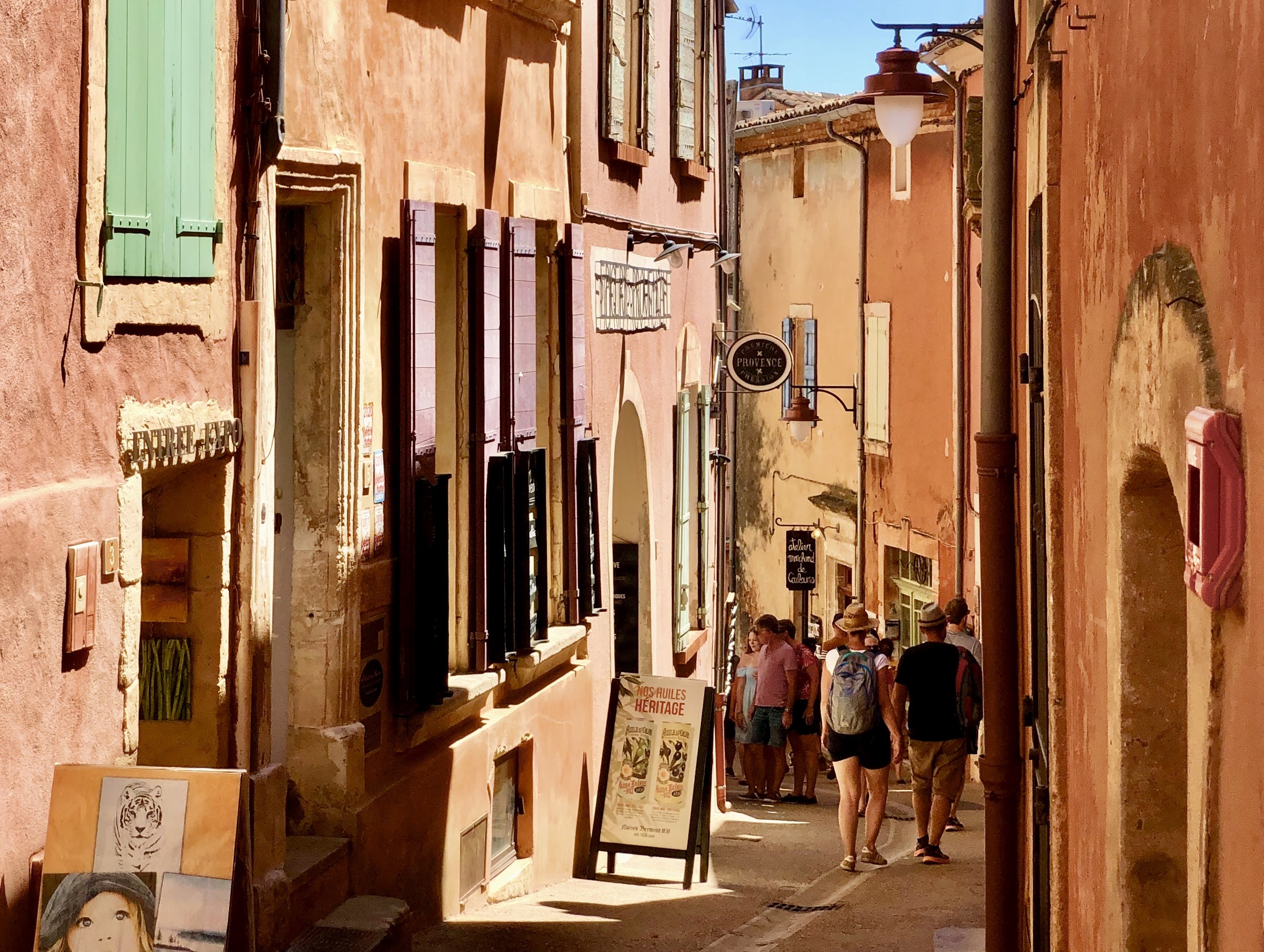 Este superb, atât prin peisajul grandios în mijlocul căruia este așezat, o oază de verdeață provensală, dar și prin mâna oamenilor care l-au fasonat și prin paleta de culori uimitoare ale caselor, ce trec cu ușurință de la alb la galben, apoi la auriu, ca să ajungă la roșu, culoarea predominantă, ilustrând efectul magnific obținut prin utilizarea ocrelor. Am găsit acest Roussillon un loc magic, atât de plăcut pentru o plimbare pe străduțele-i înguste ce șerpuiesc printre fațade care mai de care mai interesante și mai colorate. Panoramele care se deschid din loc în loc, colțurile umboasoase, zumzetul piațetelor pline de oameni așezați la o masă m-au făcut să uit de vremurile tulburi pe care le trăim.