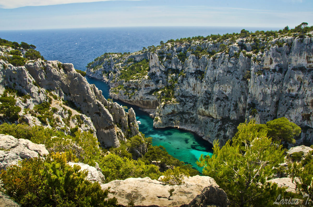 Calanques de Marseille, sau mai exact Masivul Calanques, sunt niște faleze vertiginoase, de un alb strălucitor, tăiate de crestături adânci și înguste și care, pe o lungime de aproximativ 20 km între Marsilia și Cassis, se scufundă în apele de un albastru profund ale Mediteranei. Ar putea fi ușor comparate cu fiordurile, doar că se scaldă în ape mai calde, sau cu niste golfuri mai strâmte. Massif des Calanques  este brăzdat de multe trasee de drumeție marcate. Eu mărturisesc că m-am indrăgostit de acest loc și mă întorc cu fiecare ocazie cu mare plăcere. Nu m-aș sătura vreodată de drumeții prin aceste minunate Calanques de Marseille.
