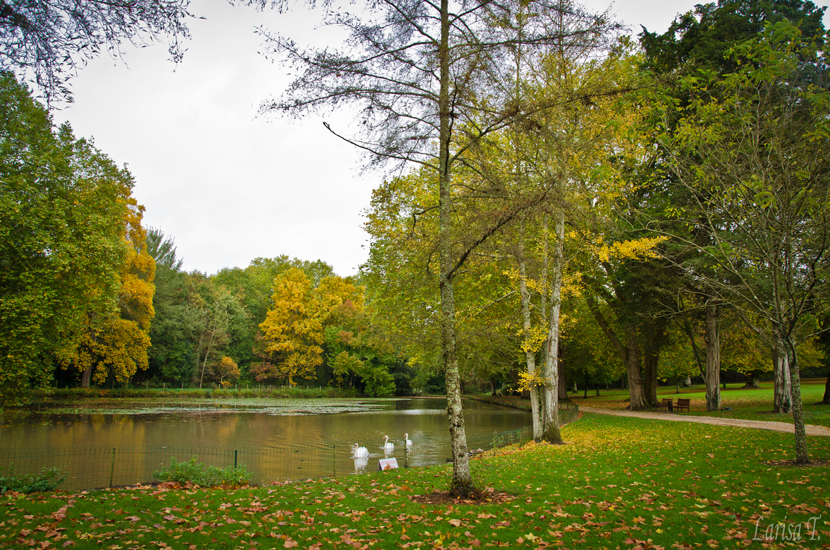 Am continuat pe la țarcurile câinilor, pentru că Cheverny se pare că a fost dintotdeauna un loc de vânătoare, astfel că pe domeniu există aproximativ 100 de câini special crescuți pentru acest sport, după care am pornit să explorăm parcul. Zic parc, pentru că Cheverny nu posedă o grădină în adevăratul sens al cuvântului, ci mai degrabă un ocean de peluze, ticsit cu arbori și arbuști ornamentali. N-are rost să mai spun despre cât era de curat și îngrijit, pentru că asta este de la sine înțeles, dar o să spun totuși despre cât era de frumos, acum în octombrie. Verdele incredibil al gazonului, care contrasta cu covorul de frunze moarte ruginii, copacii colorați de la verde profund până la galben-roșiatic, aleile pietruite, băncuțele așezate strategic, din loc în loc, au făcut plimbarea un deliciu.